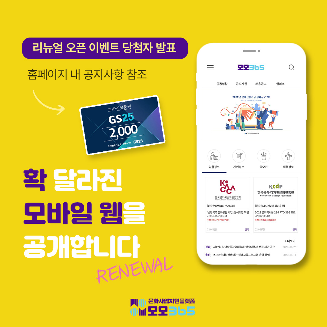 문화사업지원플랫폼 모모365 리뉴얼 오픈기념 이벤트 당첨자 발표!!