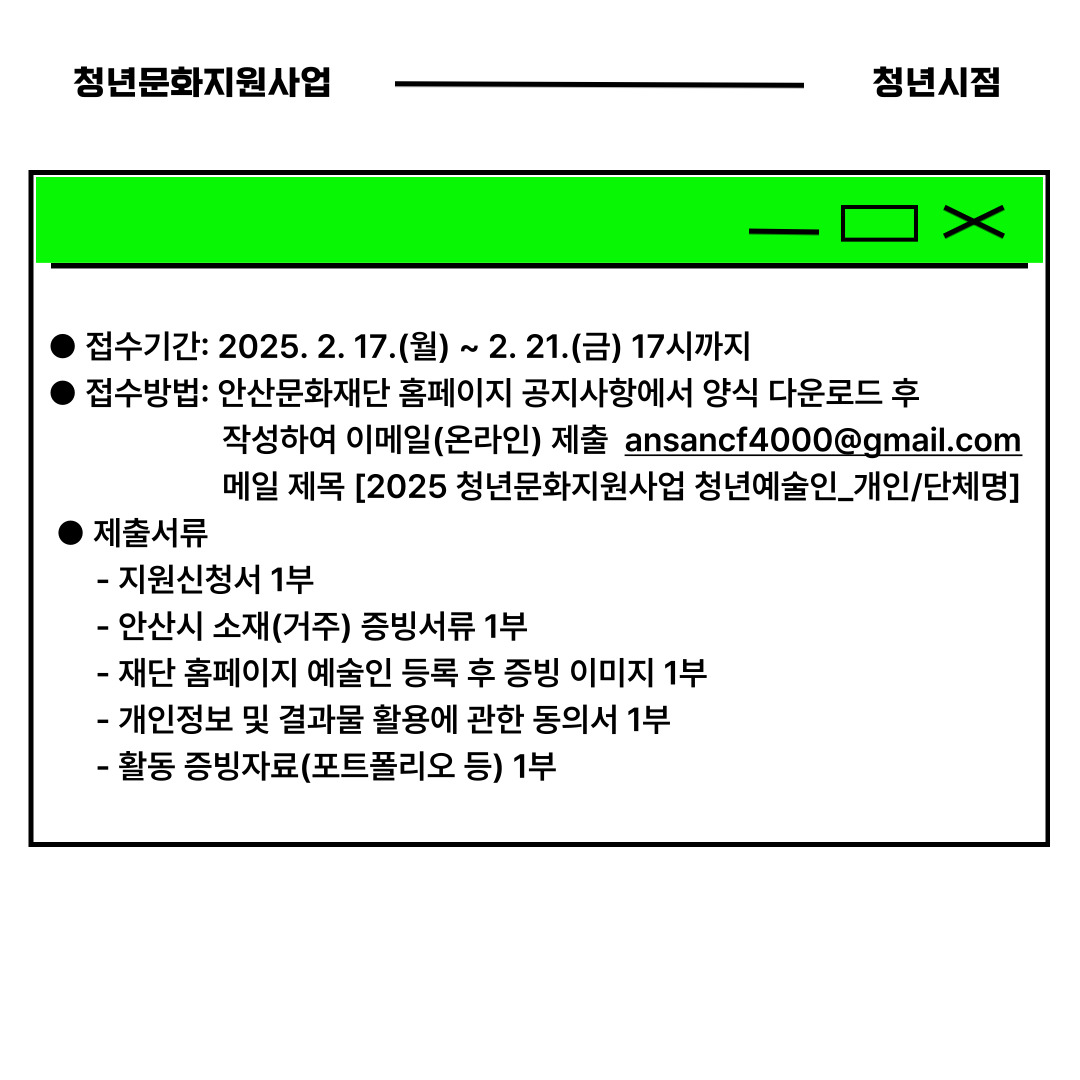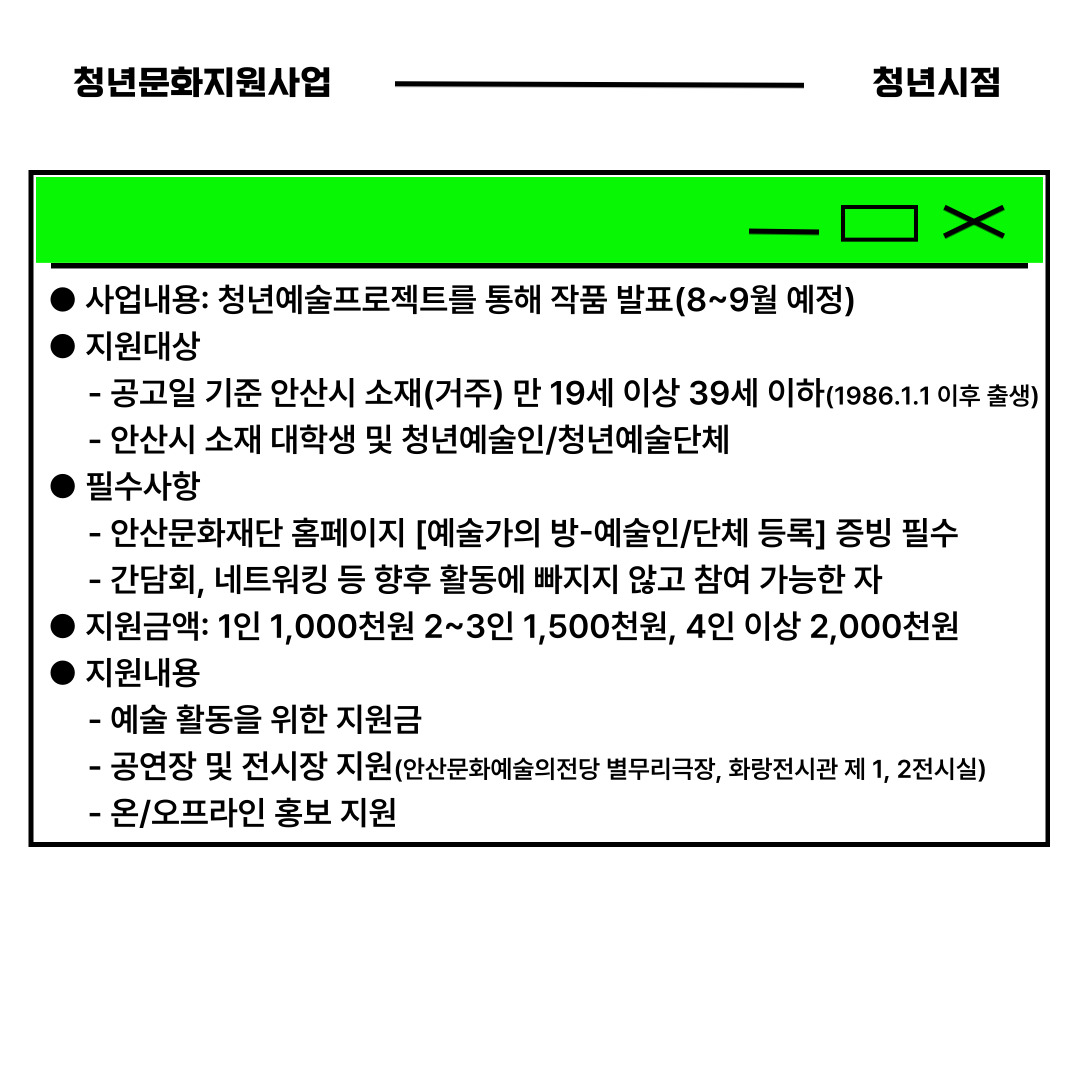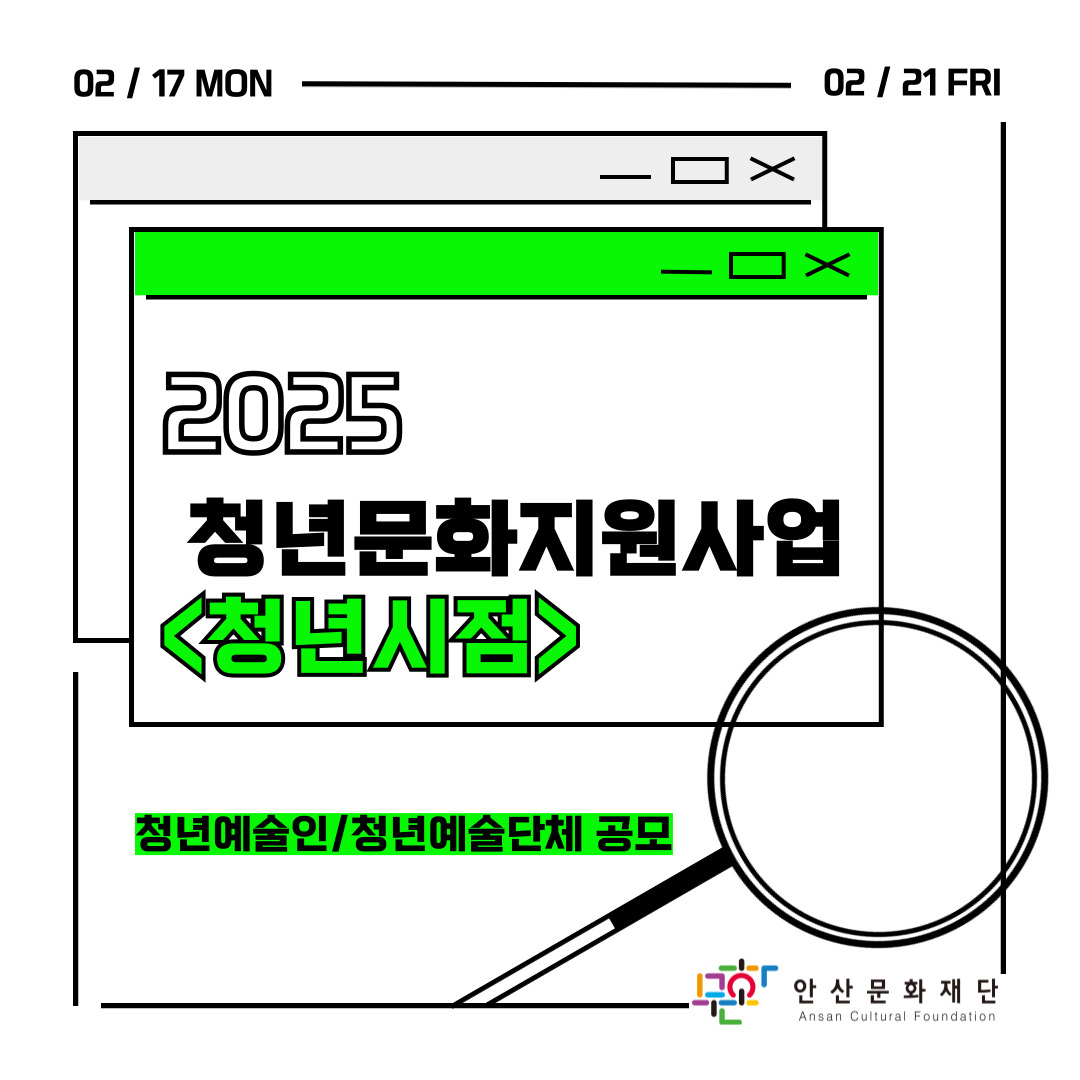 | [안산문화재단] 2025 청년문화지원사업 <청년시점> 청년예술인/청년예술단체 모집 | |||