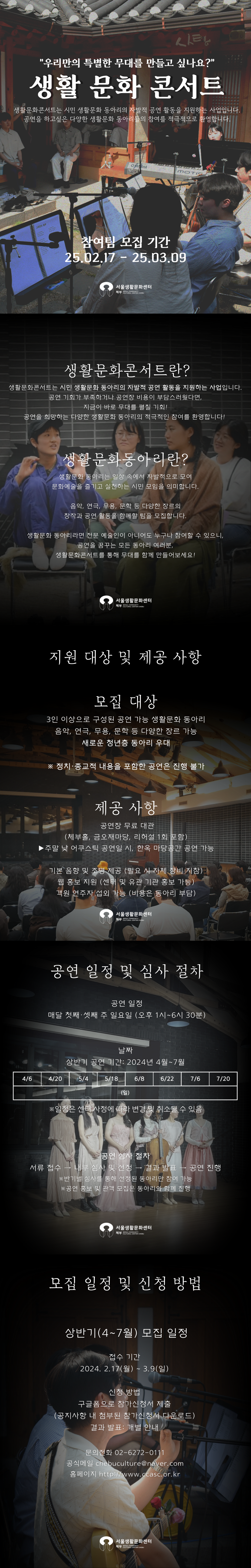 | 2025 1반기(4~7월) 생활문화콘서트 참여 동아리 모집 | |||