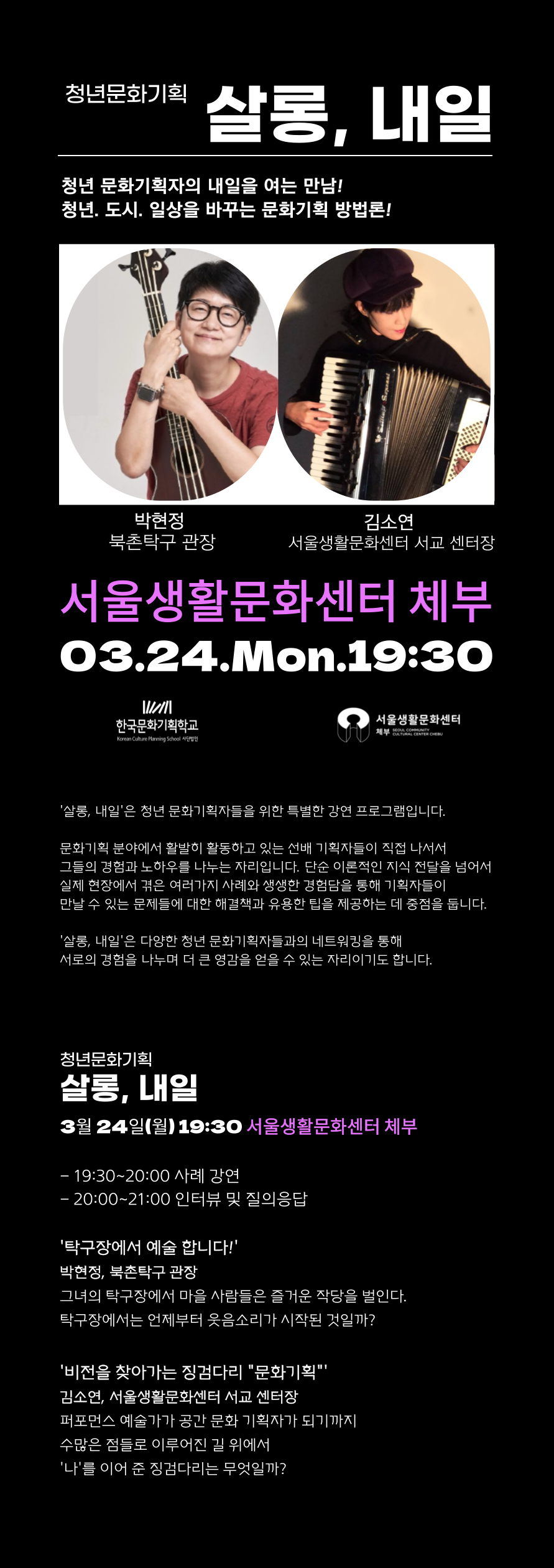 청년문화기획 '살롱, 내일' 3월 24일(월) 19:30 서울생활문화센터 체부
