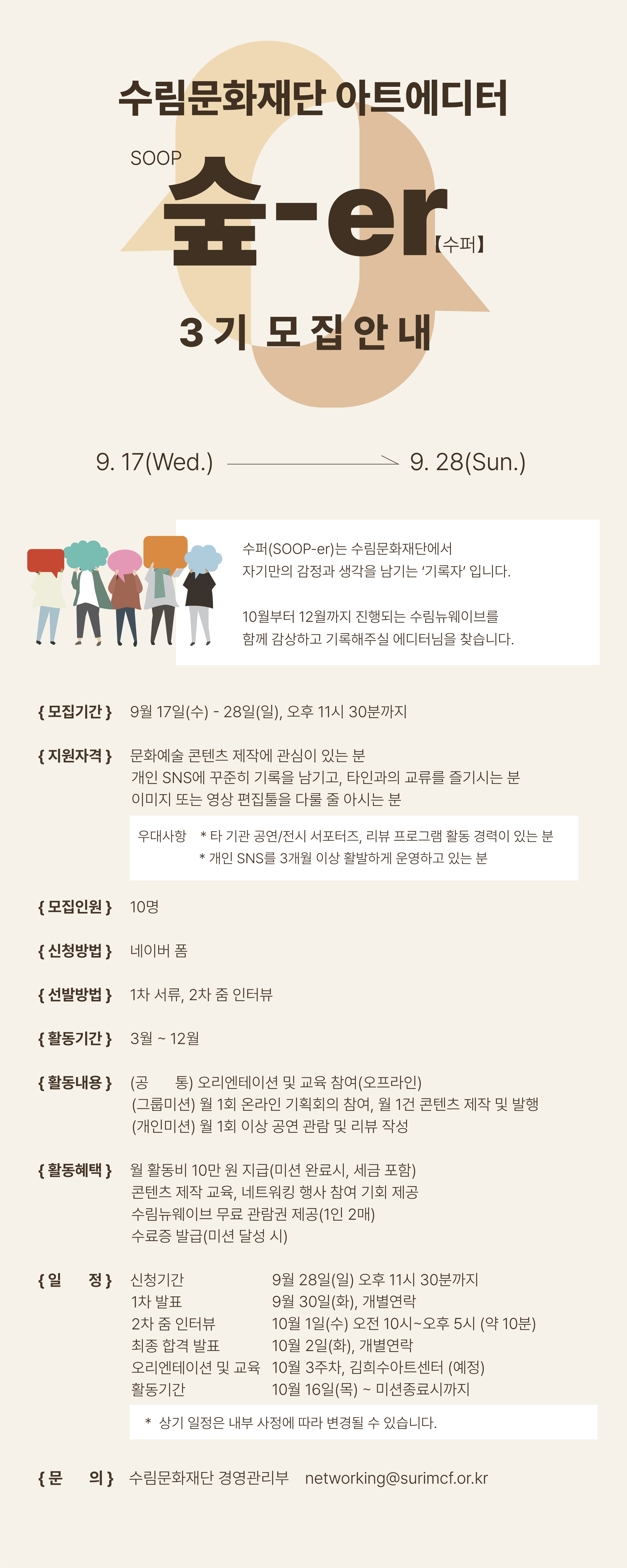 | [수림문화재단] 수림아트에디터 3기 모집(~9.28) | |||