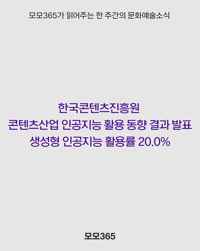 4. 한국콘텐츠진흥원, 콘텐츠산업 인공지능 활용 동향 결과 발표… 2025년 상반기 콘텐츠 사업체 생성형 인공지능 활용률 20.0% https://www.lecturernews.com/news/articleView.html?idxno=188399