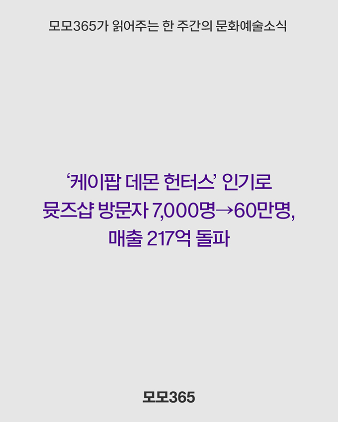 8. ‘케이팝 데몬 헌터스’ 인기로 뮷즈샵 방문자 7,000명→60만명, 매출 217억 돌파 https://v.daum.net/v/20251011194142915