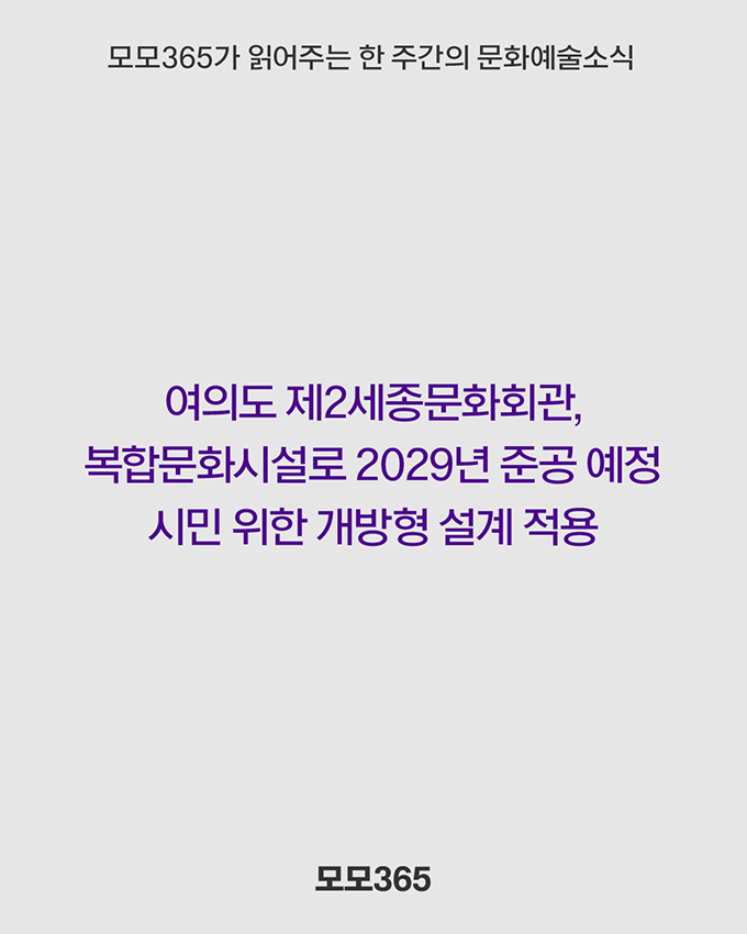 현대미술관과 손잡고 글로벌 협력 본격화’ https://www.geconomy.co.kr/mobile/article.html?no=309792 7. 여의도 제2세종문화회관, 복합문화시설로 2029년 준공 예정. 시민 위한 개방형 설계 적용 https://cm.asiae.co.kr/article/2025110517234007429 8. 구리시, 시립미술관 건립 본격화…'예술·문학·삶이