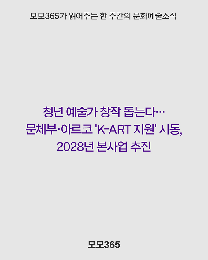 매주 초, 모모365가 한 주간의 문화예술 소식을 엄선해 읽어드립니다! 나에게 필요한 모든 문화예술 정보, 모모365에서 편리하게 확인하세요!