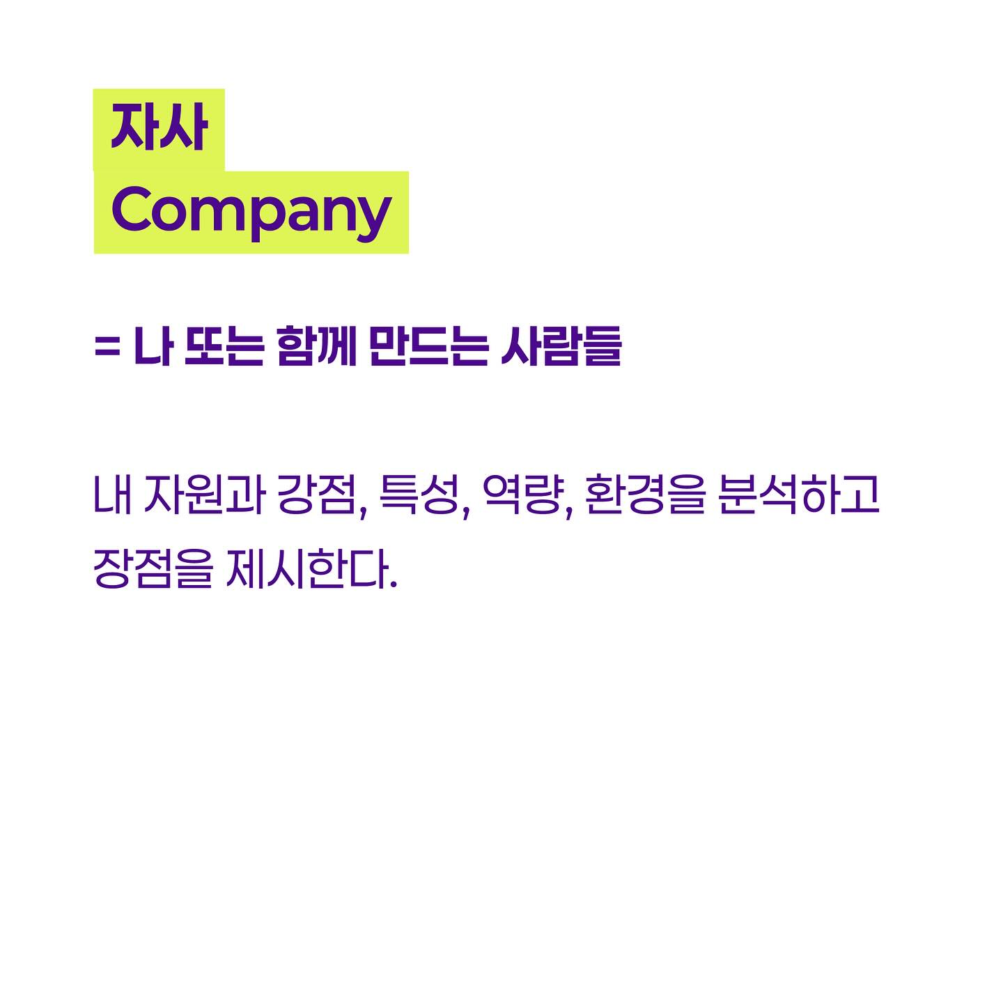 3. 자사 Company 나 또는 함께 만드는 사람들 내 자원과 강점, 특성, 역량, 환경을 분석하고 장점을 제시한다.