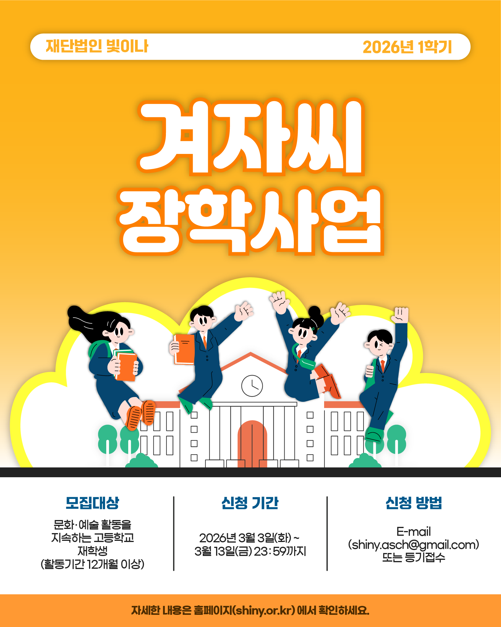 | [재단법인 빛이나] 2026년 1학기 빛이나 겨자씨 장학사업 시행 공고 | |||