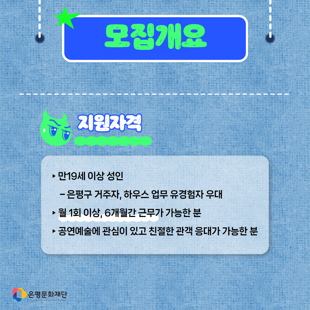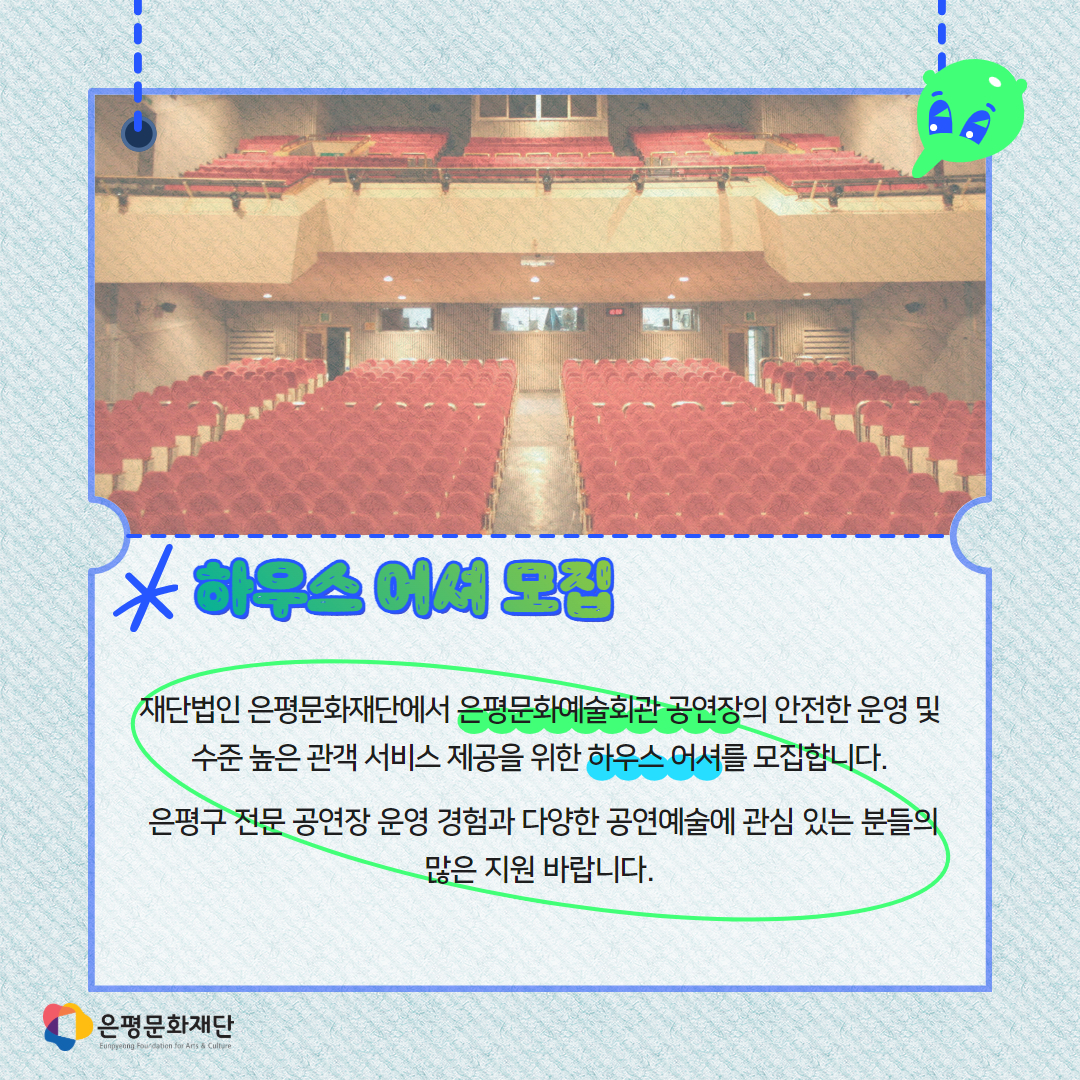 ‣ 공연예술에 관심이 있고 적극적인 서비스 마인드로 관객 응대가 가능한 분