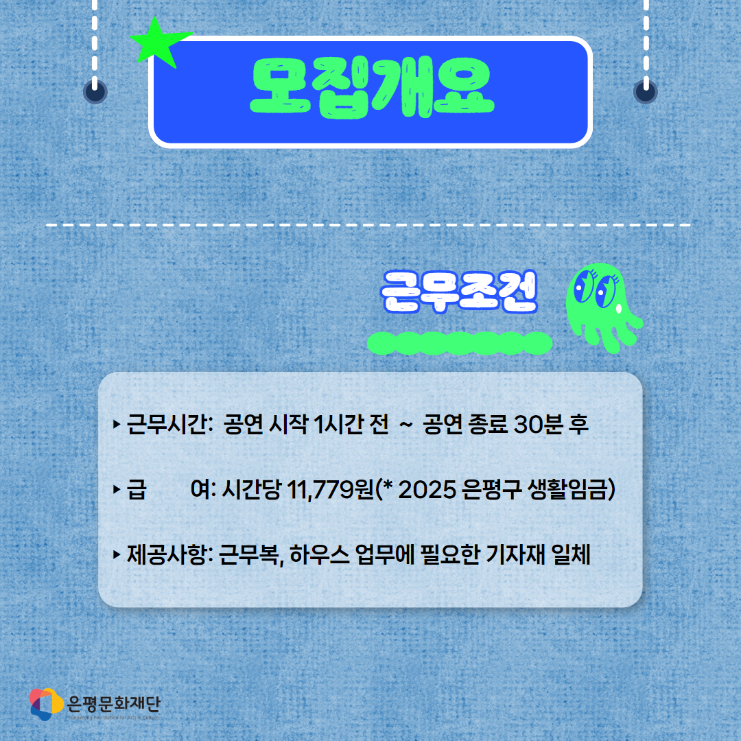 ○ 근무시간: 공연 시작 1시간 전 ~ 공연 종료 후 30분