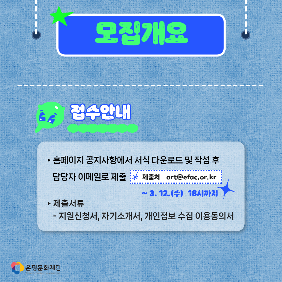 ○ 제출처: art@efac.or.kr *제출 시 첨부파일 및 이메일 제목을 ‘하우스 어셔 지원(신청자명)’으로 기재