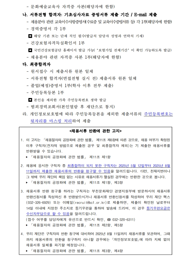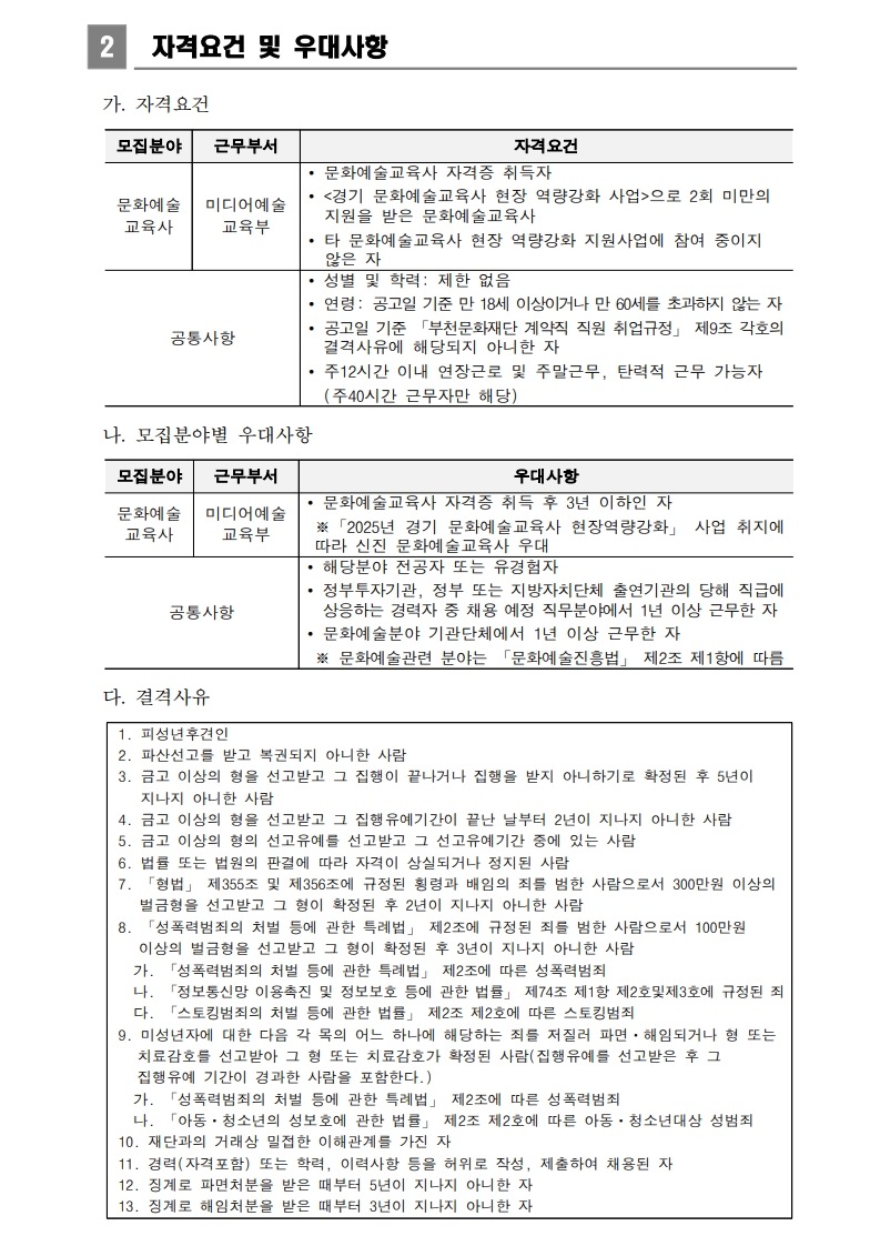[부천문화재단] (재)부천문화재단 2025년도 제2회 공개채용(기간제근로자) 모집 공고