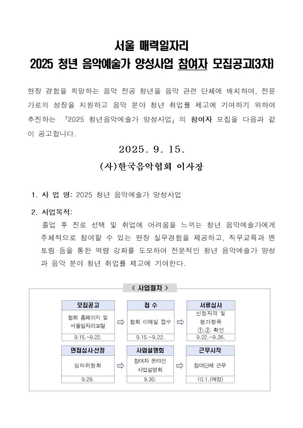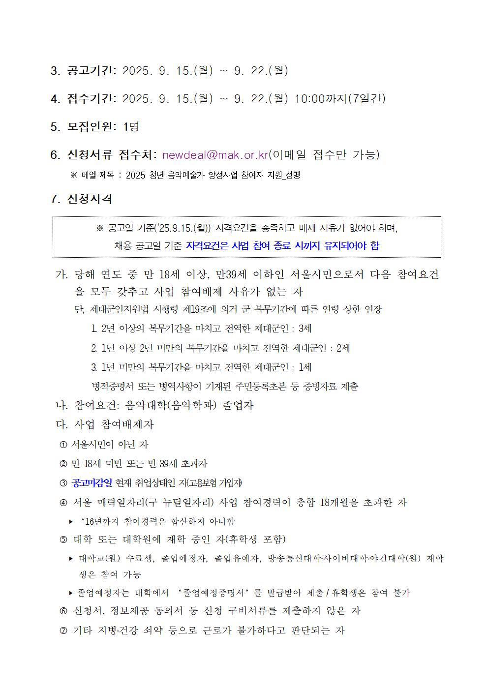 20250916091411_서울_매력일자리_2025_청년_음악예술가_양성사업_참여자_공고문(3차).hwp
