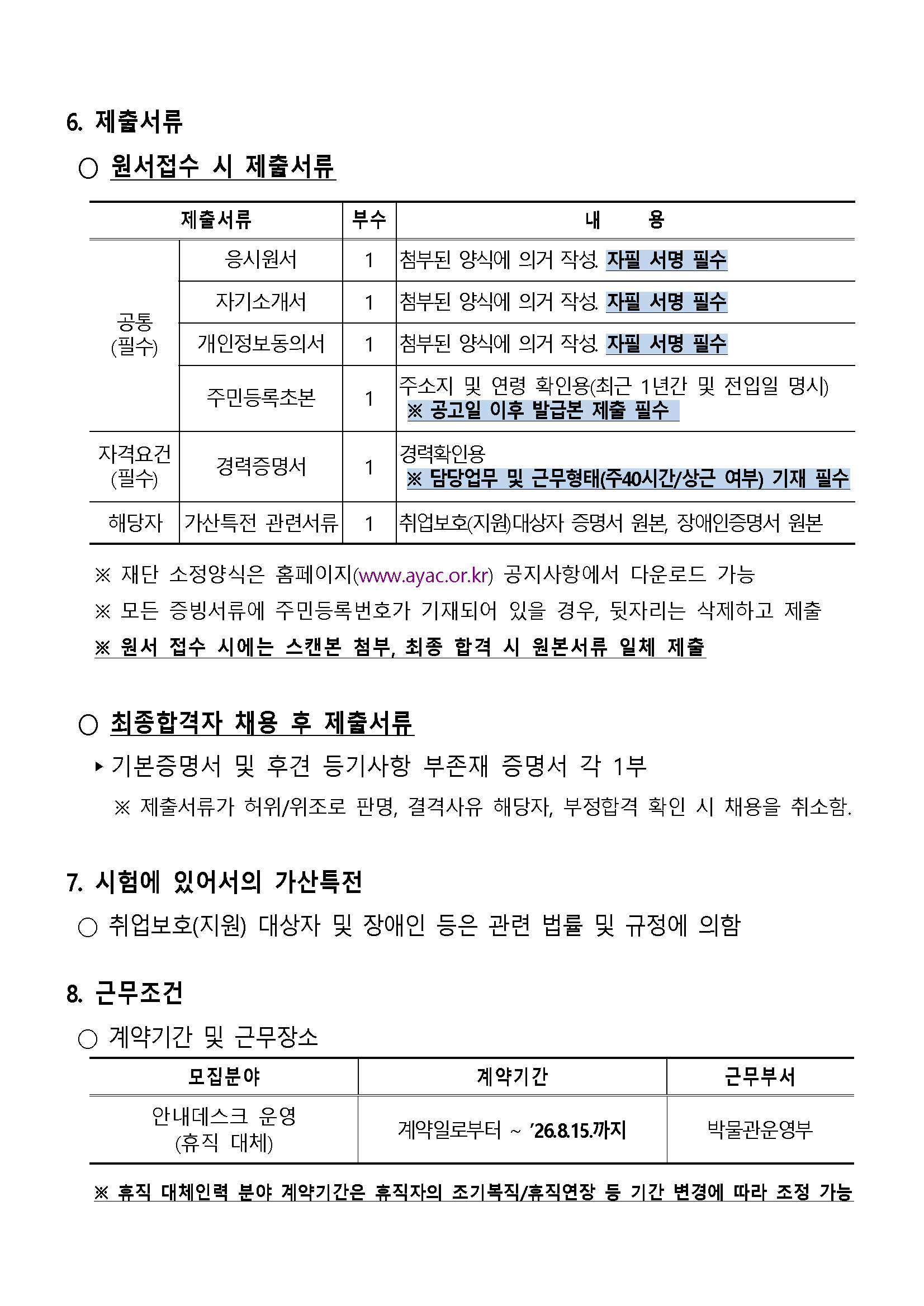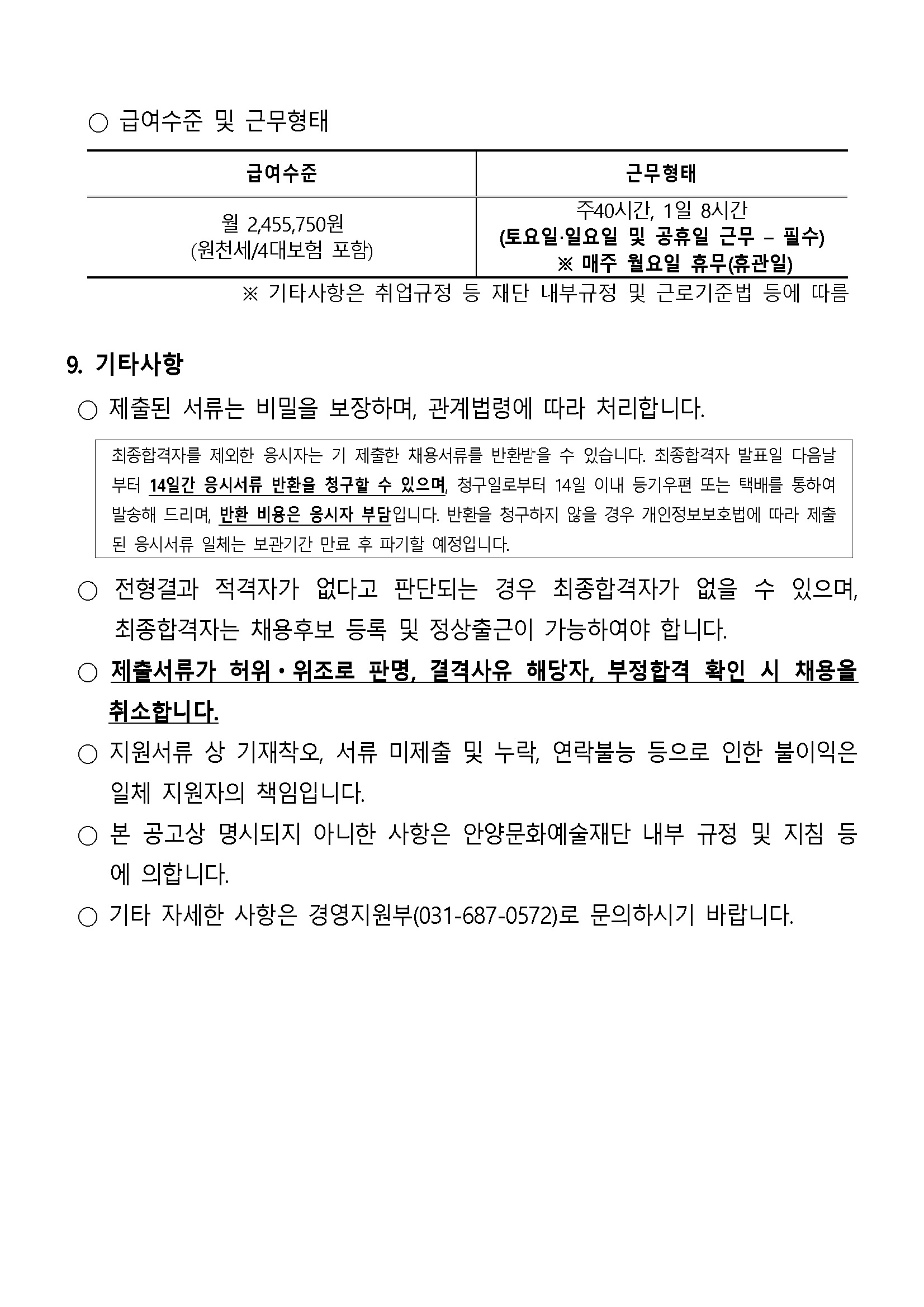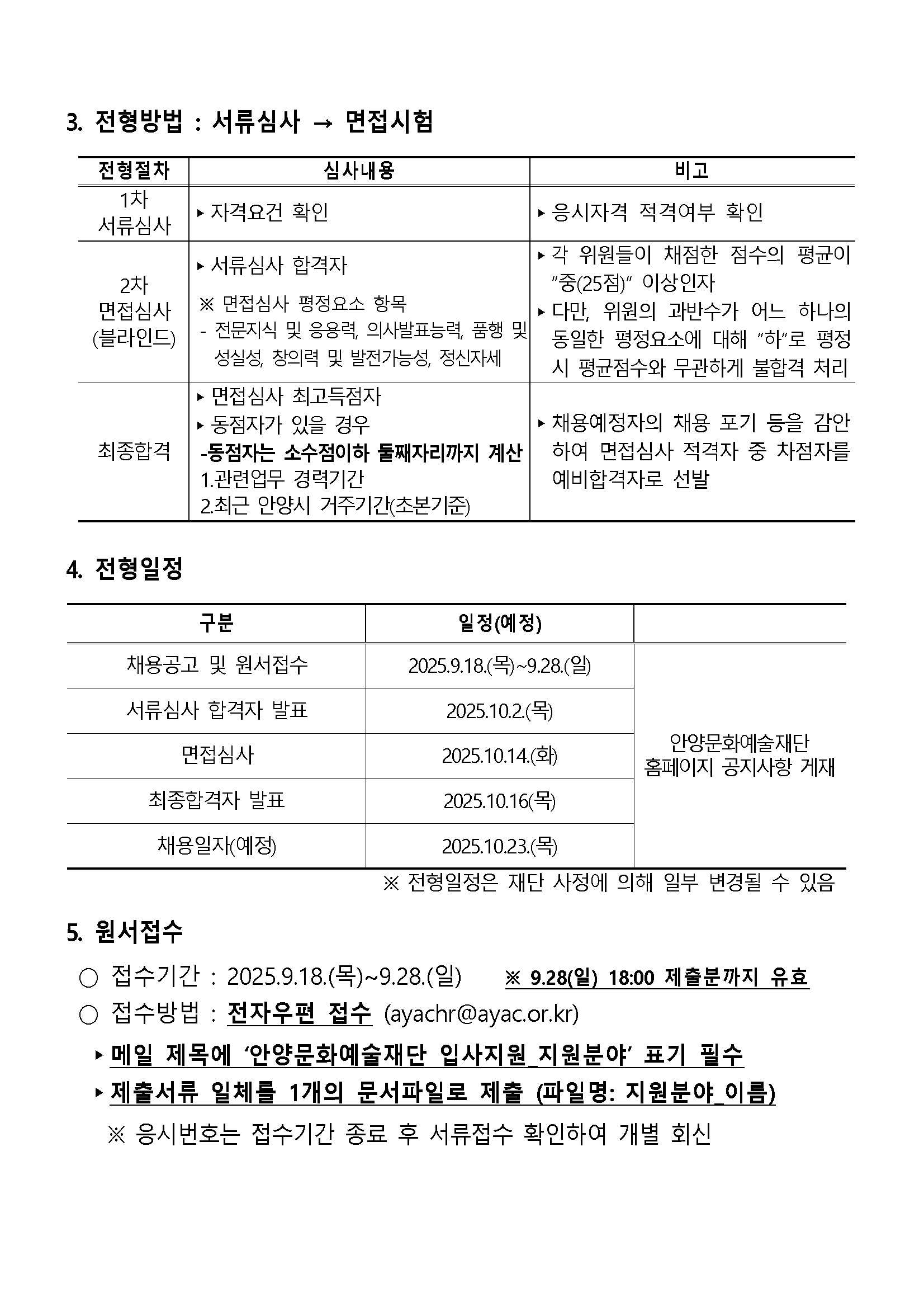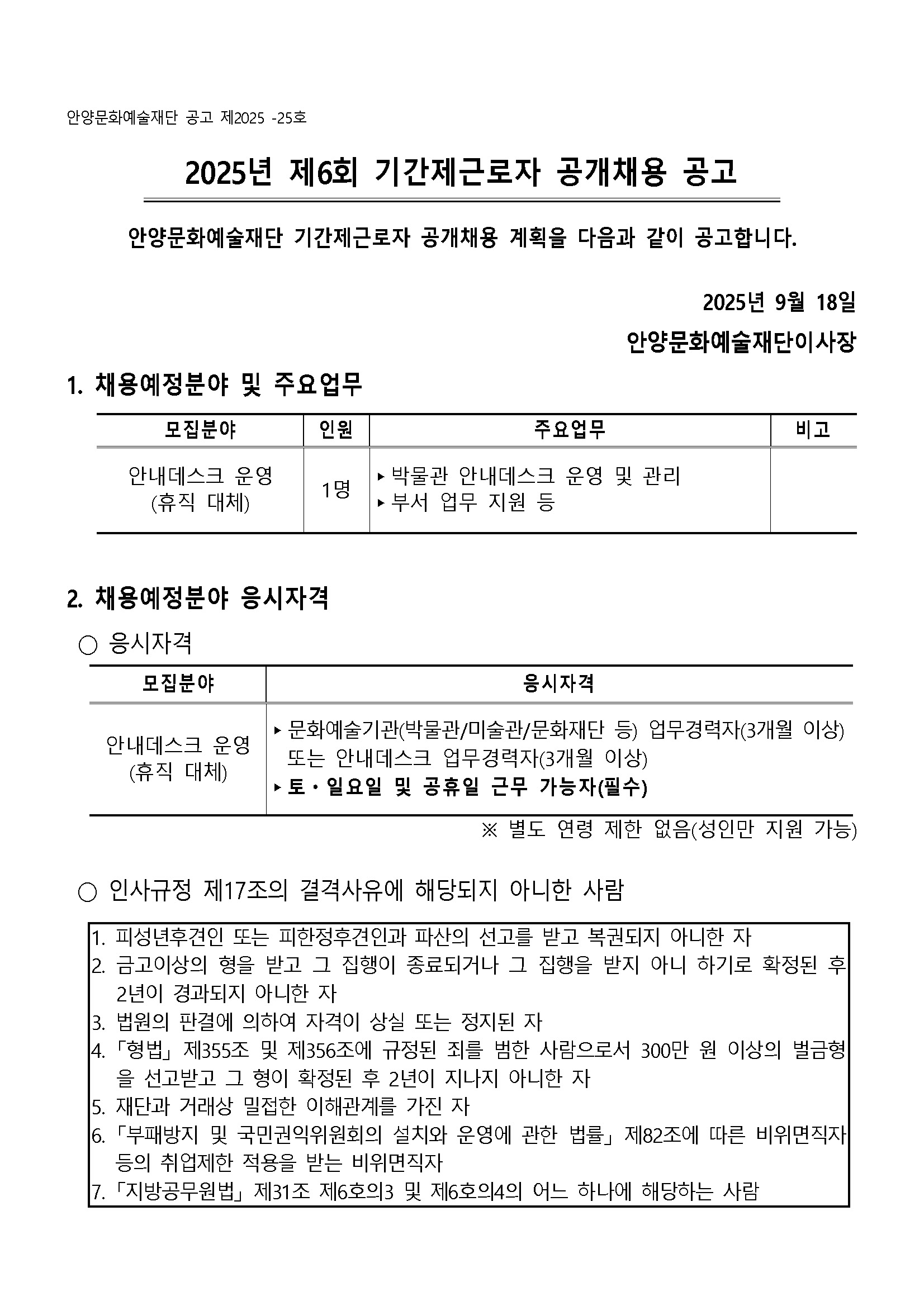[안양문화예술재단] 2025년 제6회 기간제근로자 공개채용 공고
