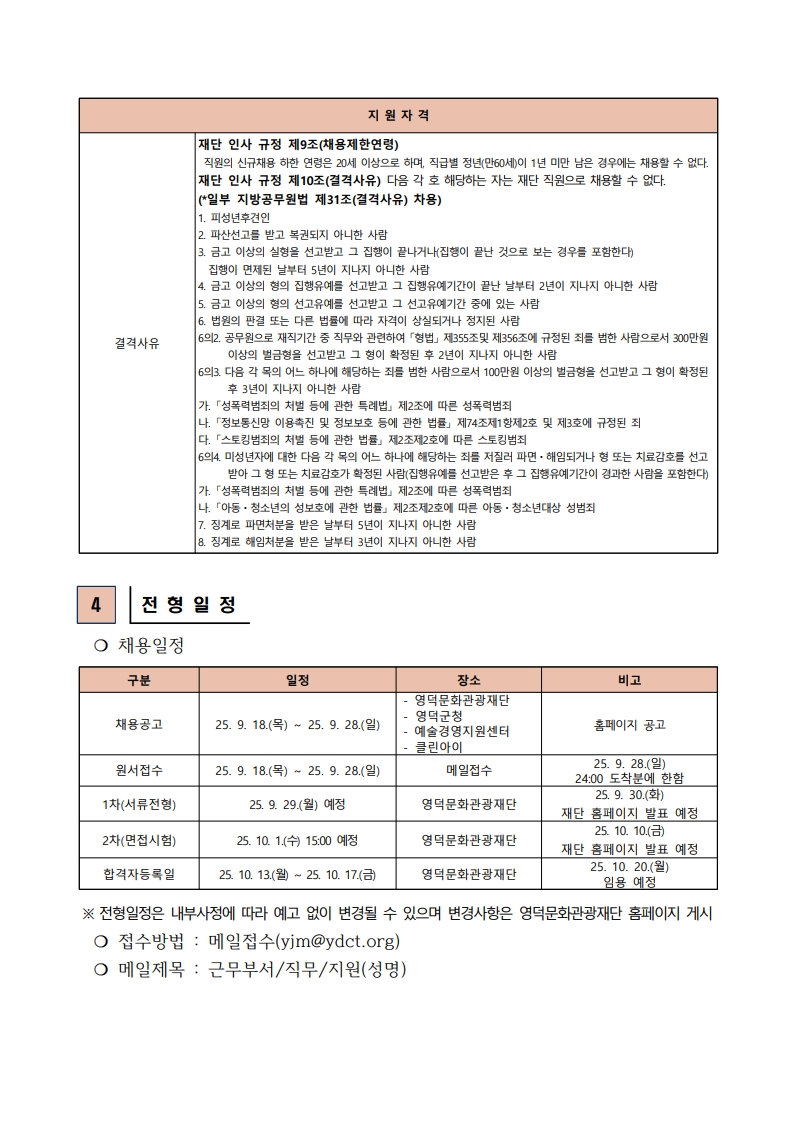 [재단법인 영덕문화관광재단] 2025년 재단법인 영덕문화관광재단 제7차 직원 채용 공고