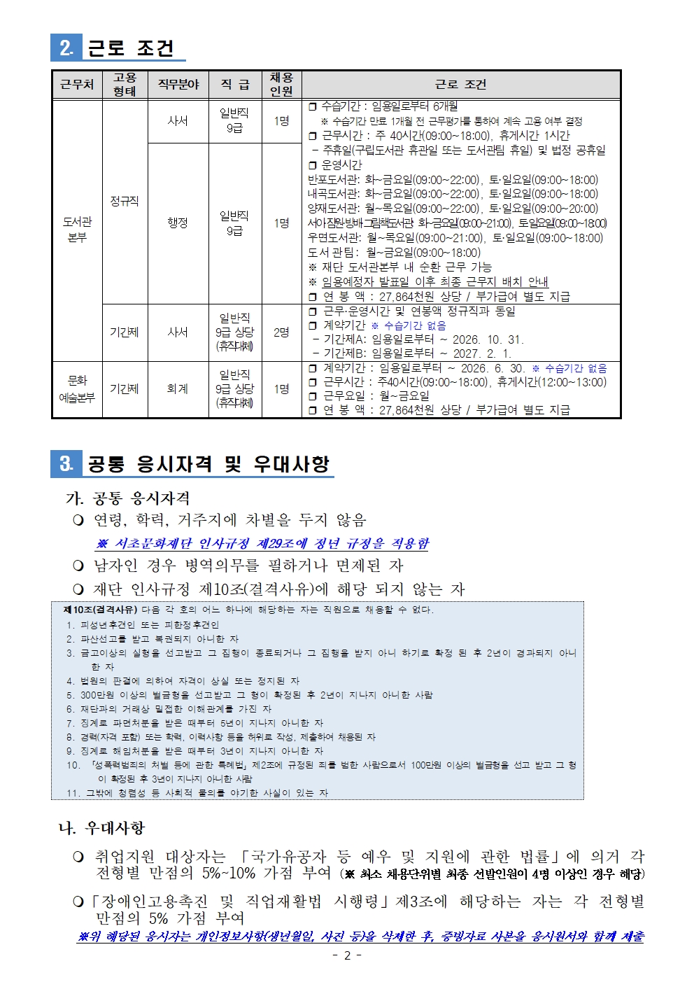 2026년 제1회 제주문화예술재단 기간제 직원 공개 채용 공고
