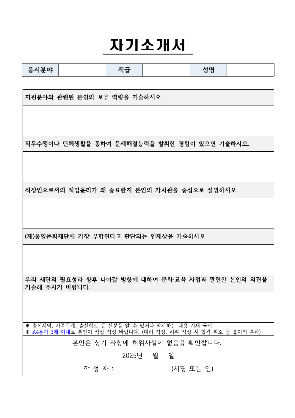 [회원등록공고] 2025년 제4차 (재)인천중구문화재단 직원채용 공고