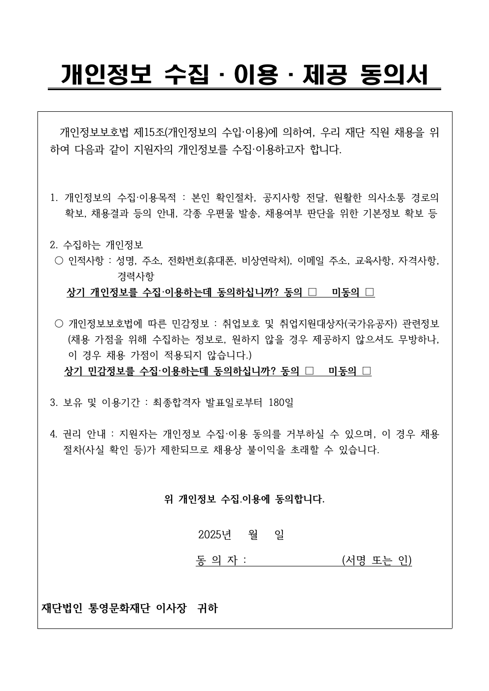 (재)통영국제음악재단 2026년 제1차 기간제근로자 채용 공고