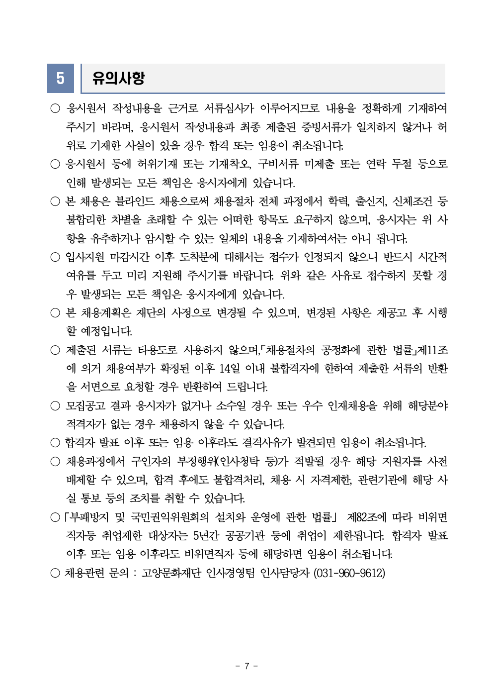 2025년 4차 고양문화재단(휴직대체) 기간제 직원 채용 공고