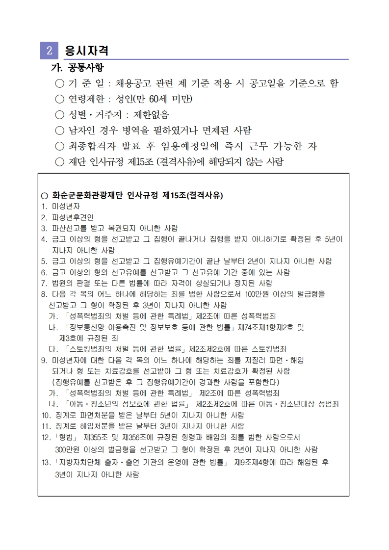 [전국지역문화재단연합회] [(재)화순군문화관광재단] 2025년 제2차 직원 채용 공고