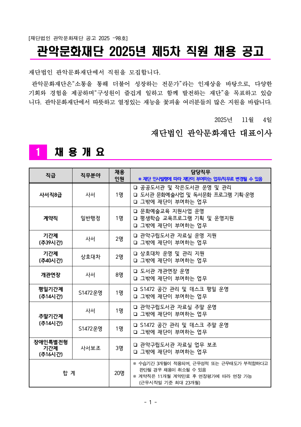 20251105103529_[붙임1] 재단법인 관악문화재단 2025년 제5차 직원 채용공고문.hwp