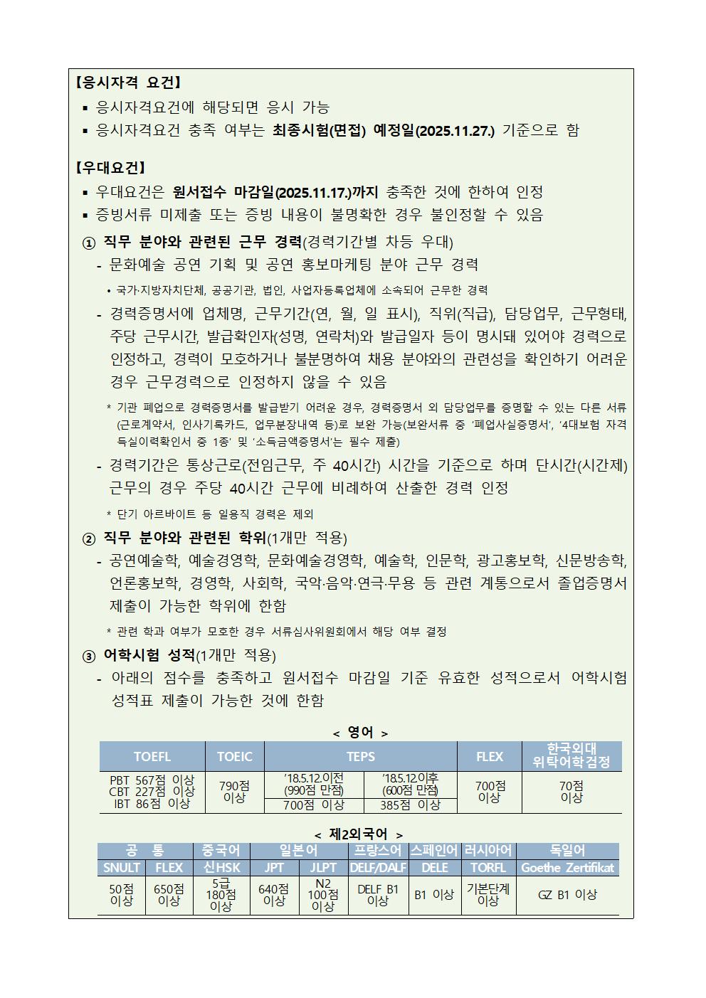 (재)서울예술단 2025년 제4차 직원 채용 공고