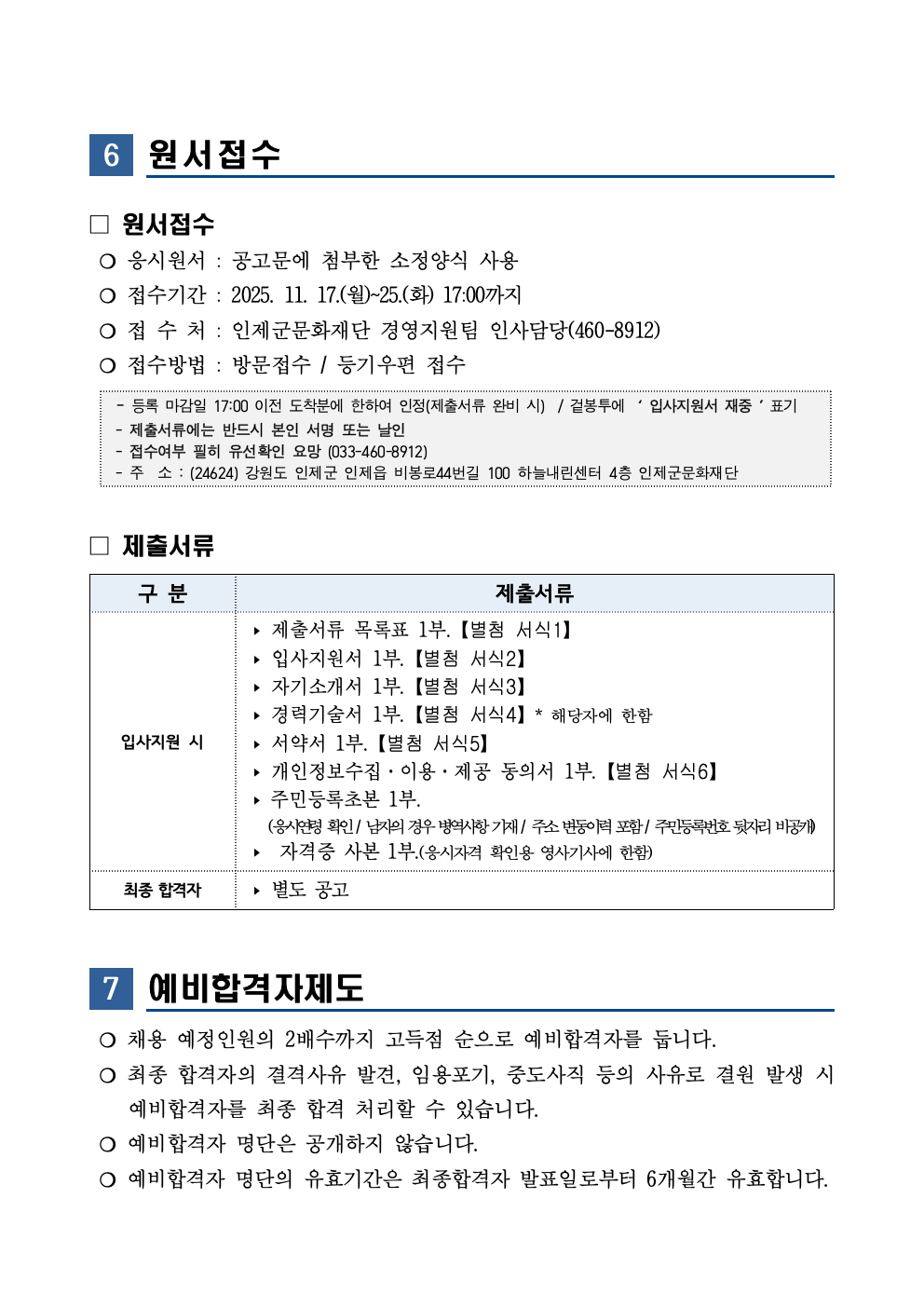 2025년 제6회 기간제근로자 공개채용 공고