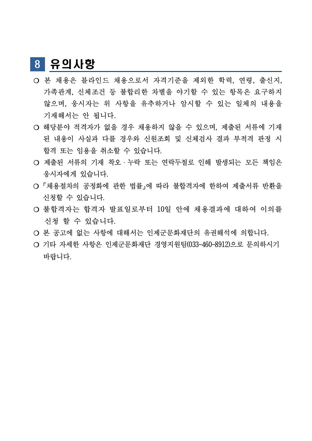 (재)인제군문화재단 신규직원(기간제근로자) 채용 공고