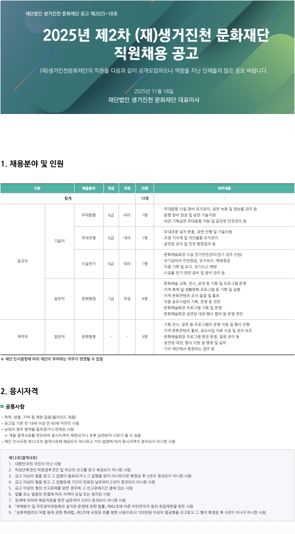 [(재)생거진천문화재단] 2025년 제2차 (재)생거진천 문화재단 직원채용