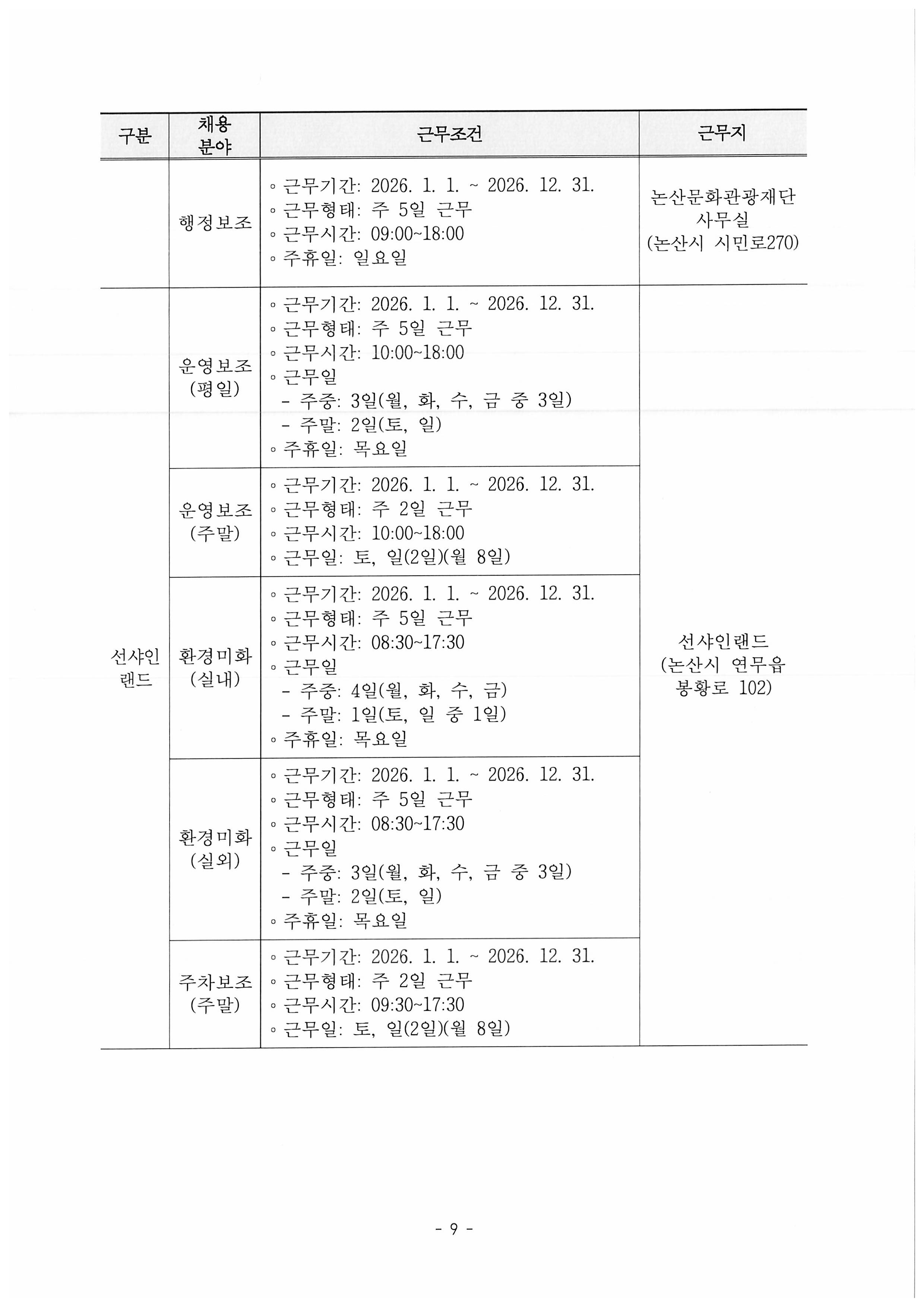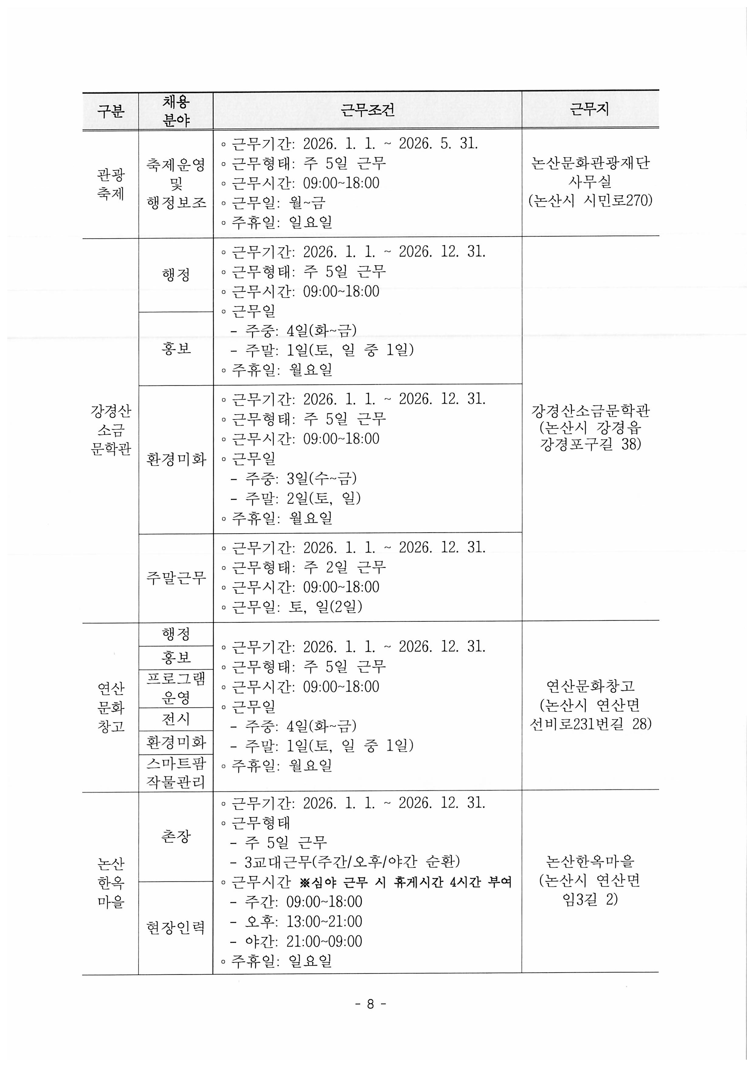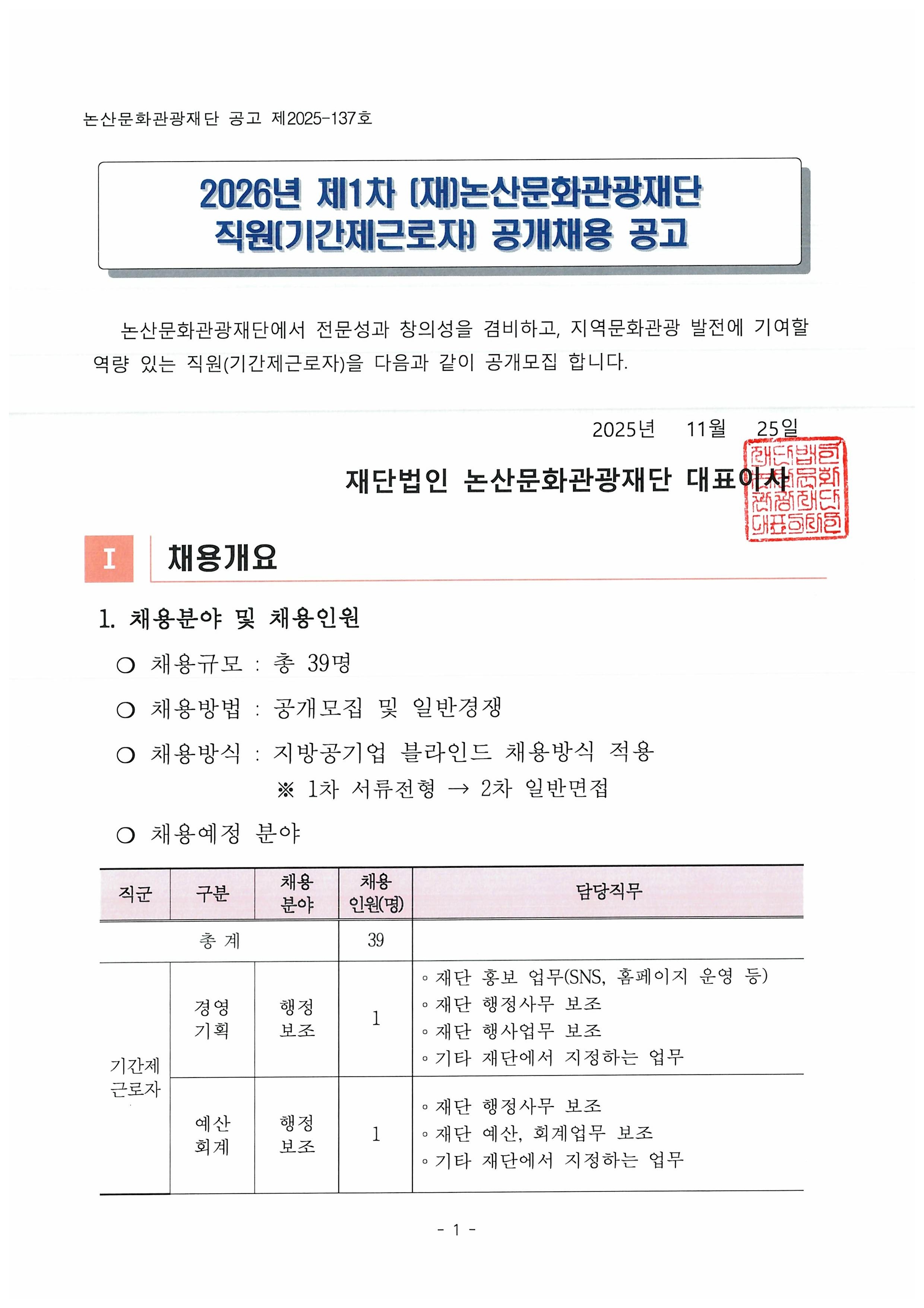 [아트모아] 2026년 제1차 (재)논산문화관광재단 직원(기간제근로자) 공개채용 공고