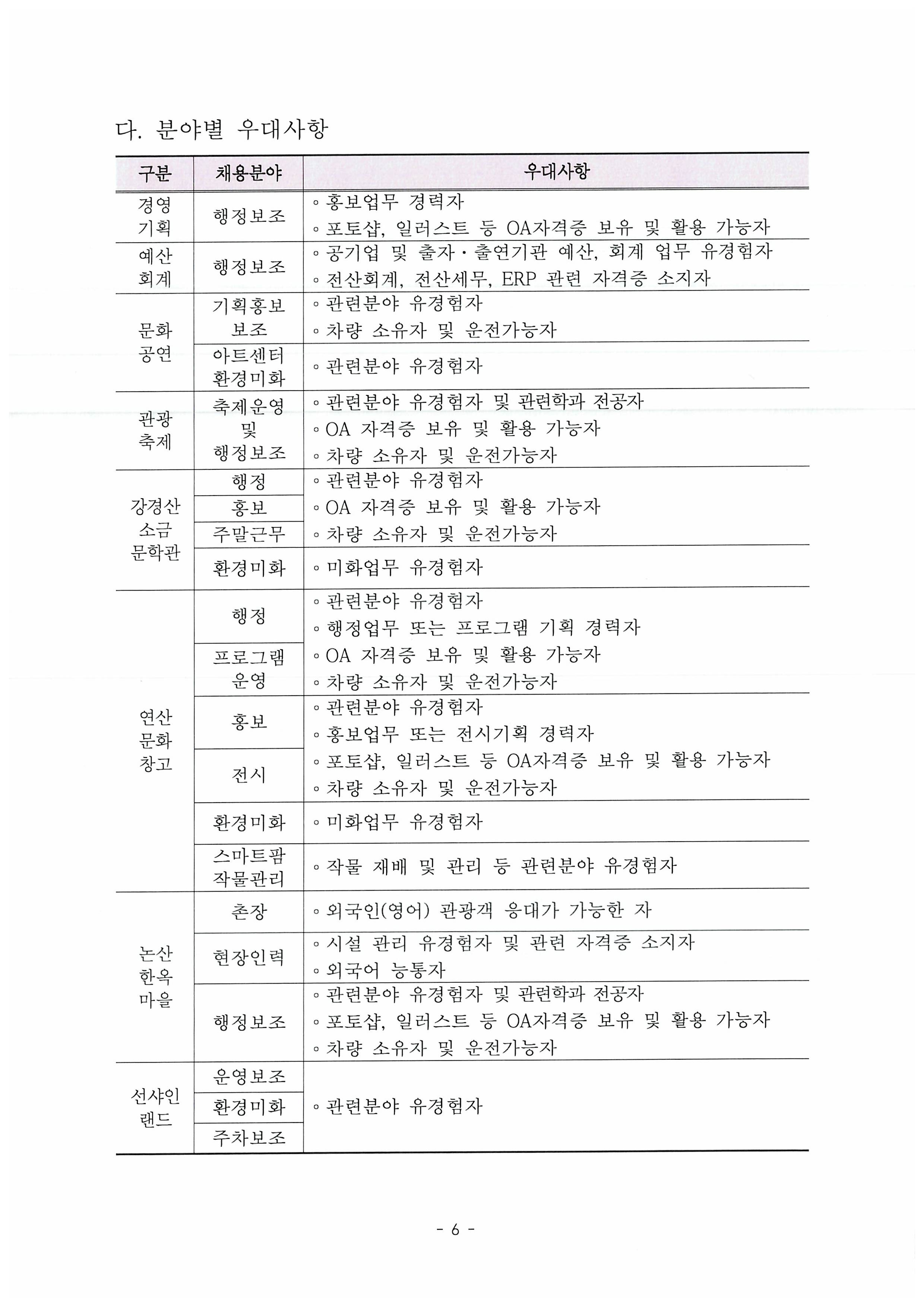 2025년 제6회 기간제근로자 공개채용 공고