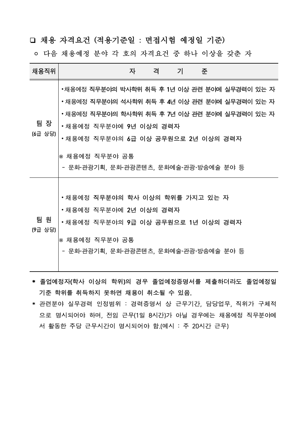 (재)속초문화관광재단 문화도시센터 팀장 채용공고