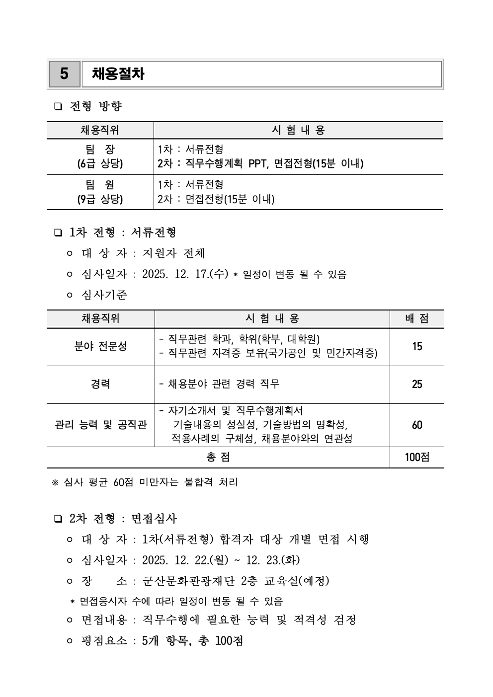 [회원등록공고] 2025년 제5차 (재)인천중구문화재단 직원채용 공고