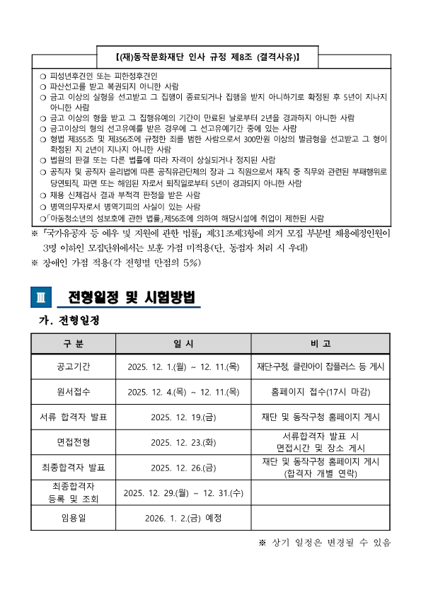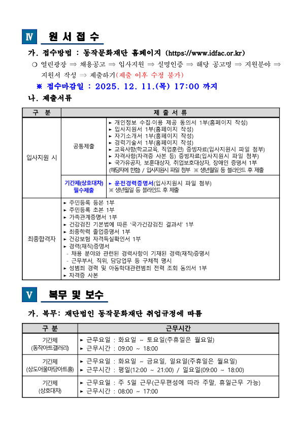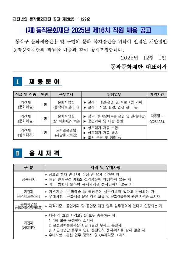 [(재)동작문화재단] 2025년 제16차 직원 채용 공고