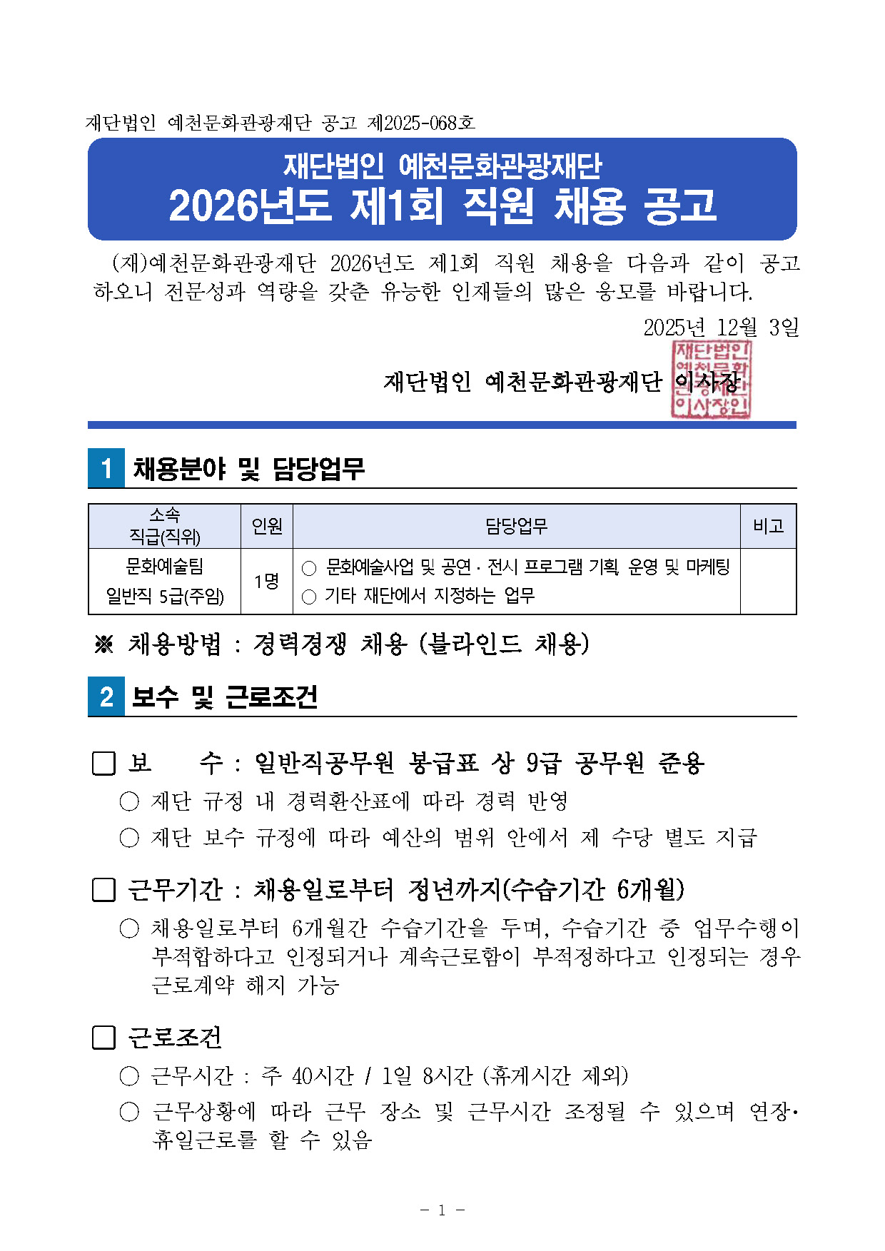 [아트모아] [예천문화관광재단] 2026년도 제1회 직원 채용