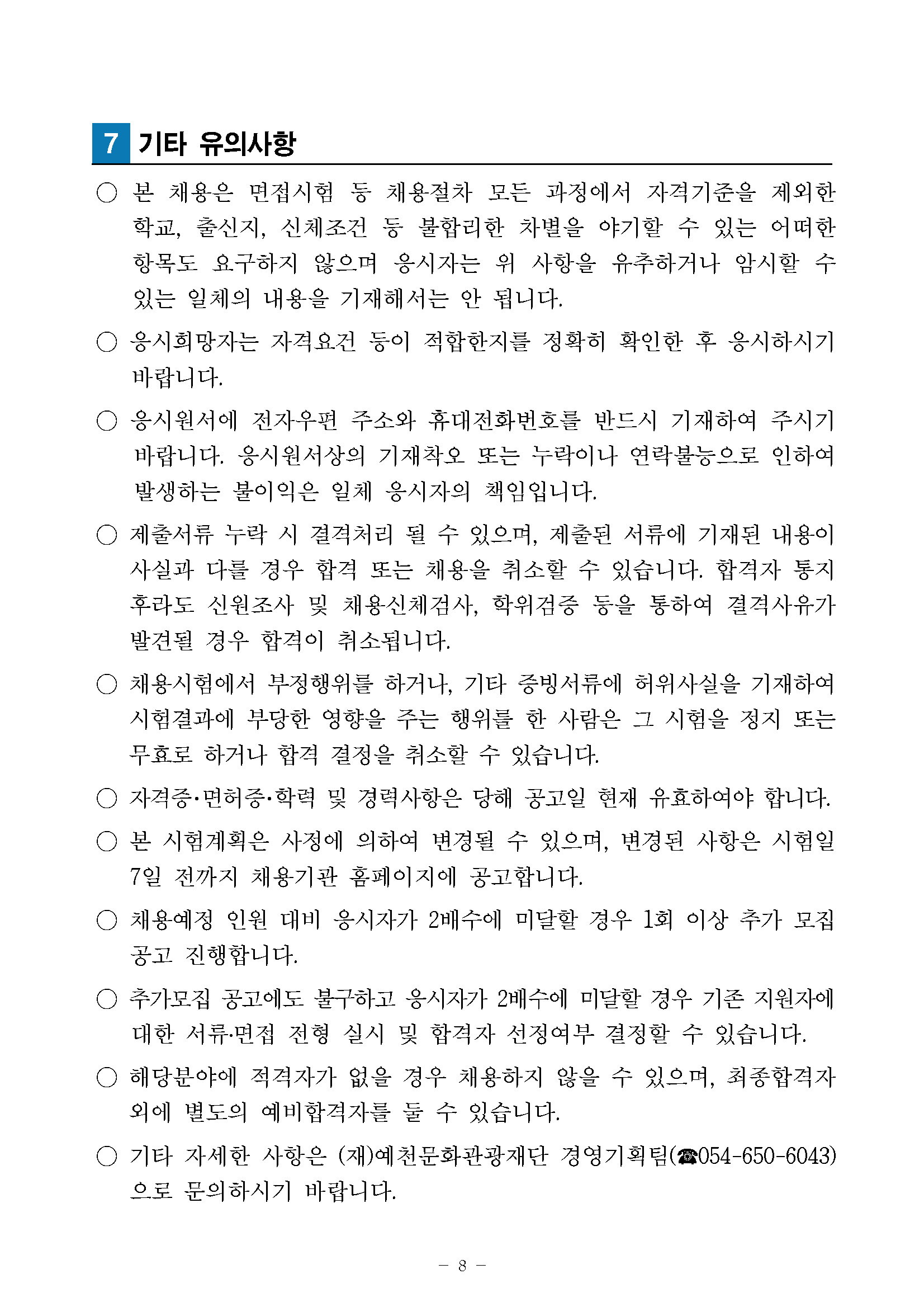 2025년 재단법인 영덕문화관광재단 제8차 직원 채용 공고