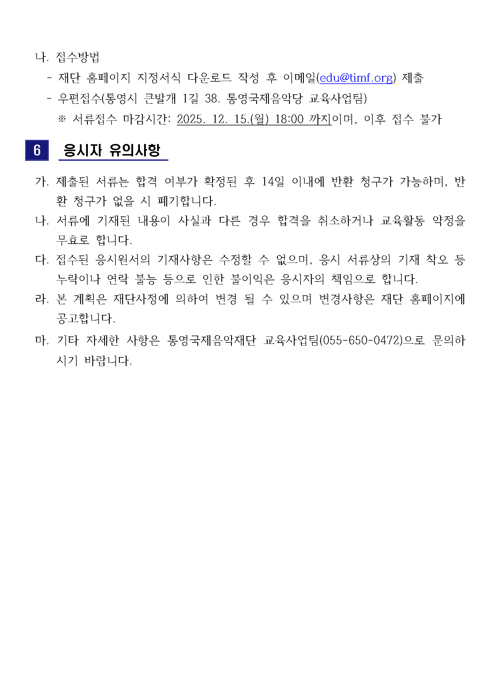 [통영국제음악재단] 2026 통영시민합창단 지도단원 모집 공고