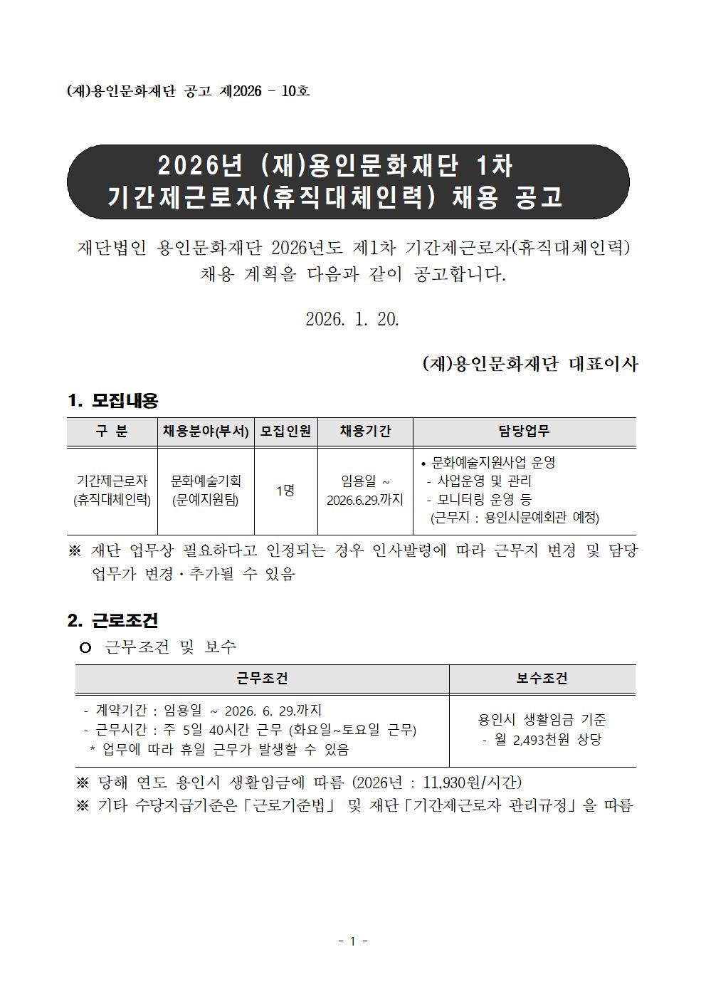 20260122034546_붙임1. 2026년 용인문화재단 1차 기간제근로자(휴직대체인력) 채용 공고.hwp
