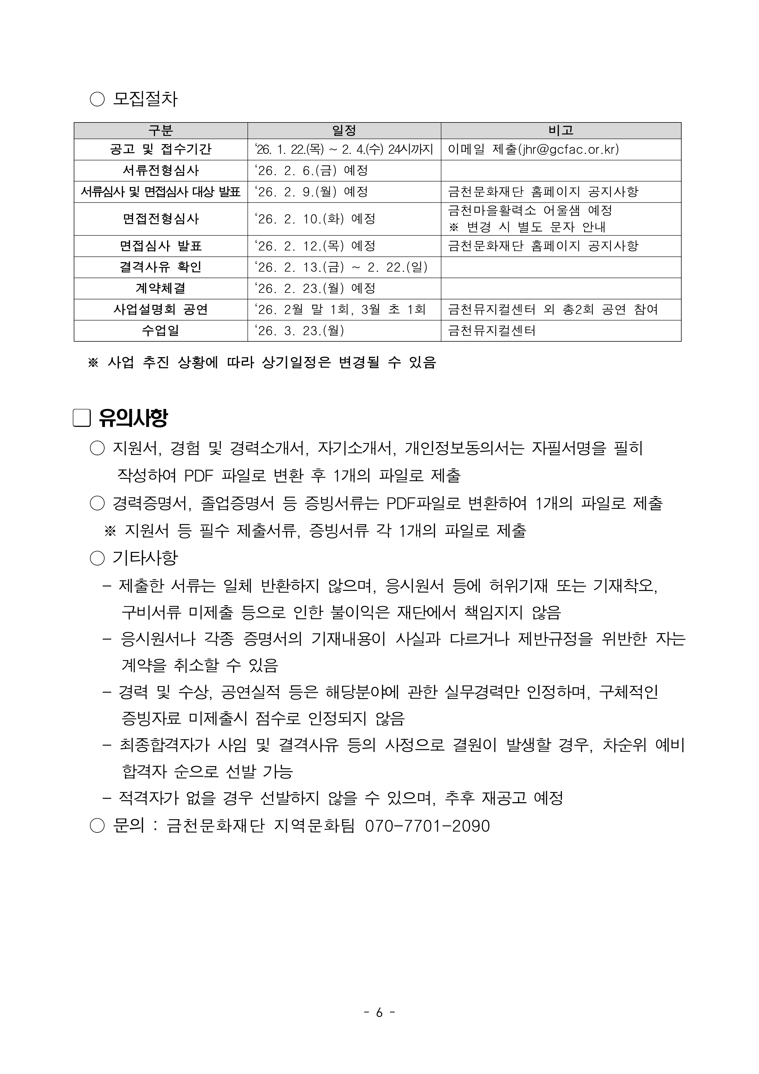 2026 (재)광명문화재단 문화예술교육팀 음악감독 모집 공고