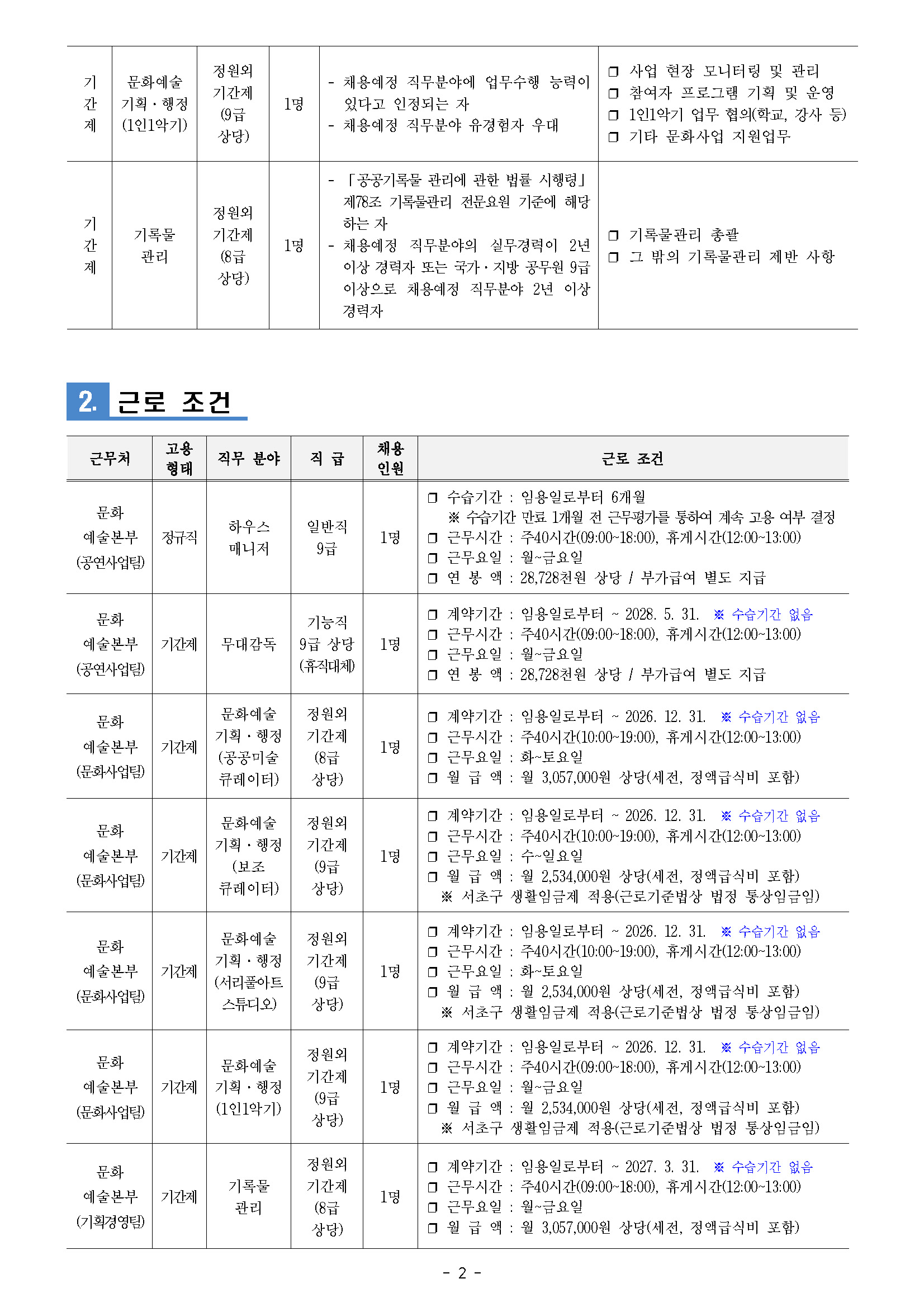 금천문화재단 2026년 제2차 공개채용 공고