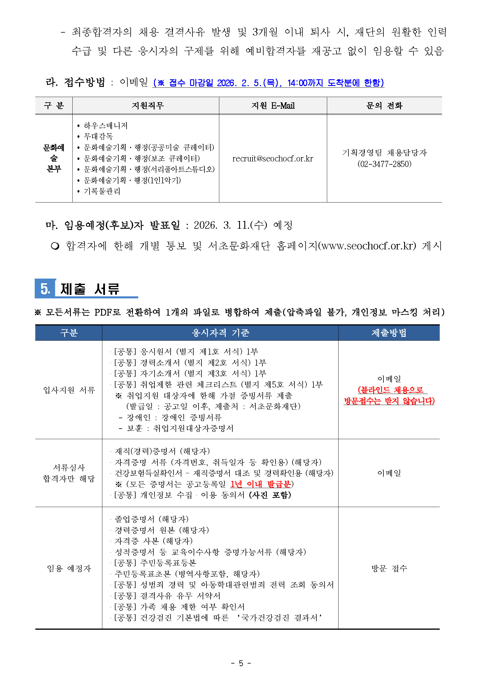 2026년 제5차 직원 채용 공고