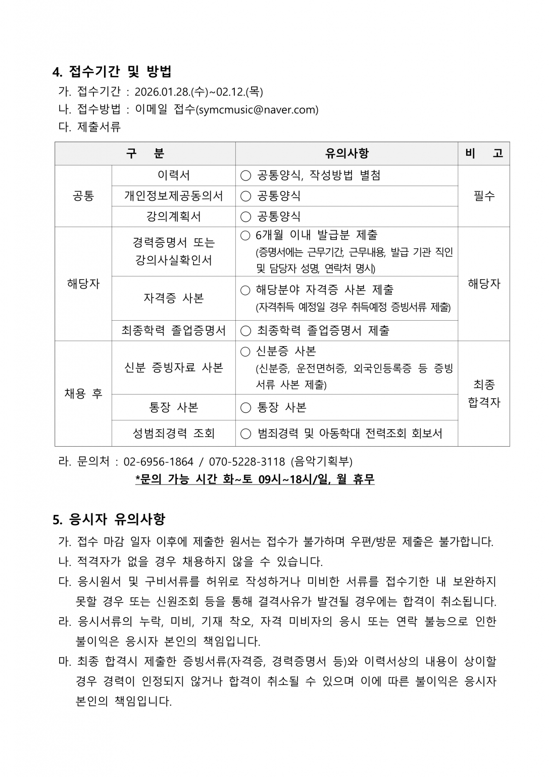 2026 (재)광명문화재단 문화예술교육팀 음악감독 모집 공고