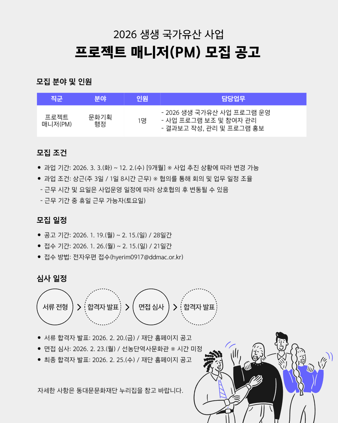[재단법인 동대문문화재단] [회원등록공고] 2026 생생 국가유산 사업 프로젝트 매니저(PM) 모집 공고