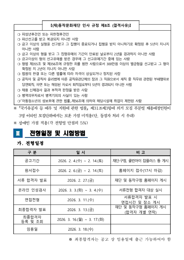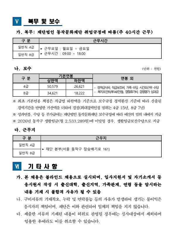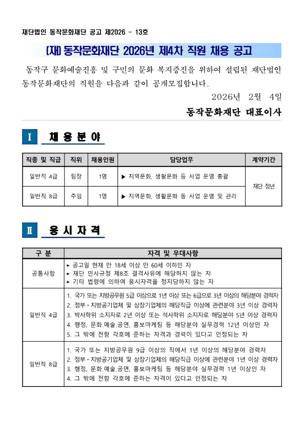 [(재)동작문화재단] 2026년 제4차 직원 채용 공고