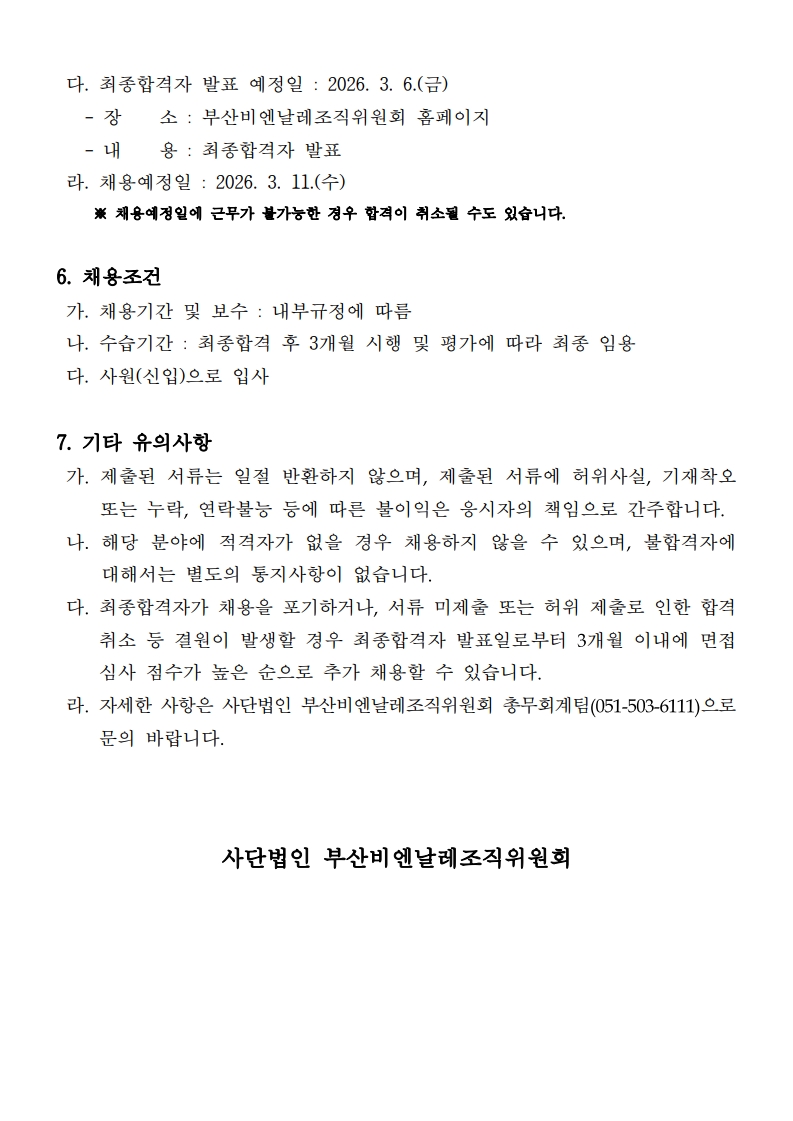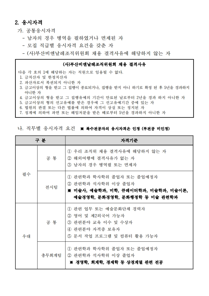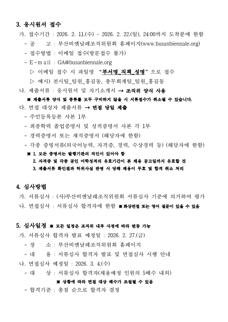 [(사)부산비엔날레조직위원회] (사)부산비엔날레조직위원회 직원 채용 공고