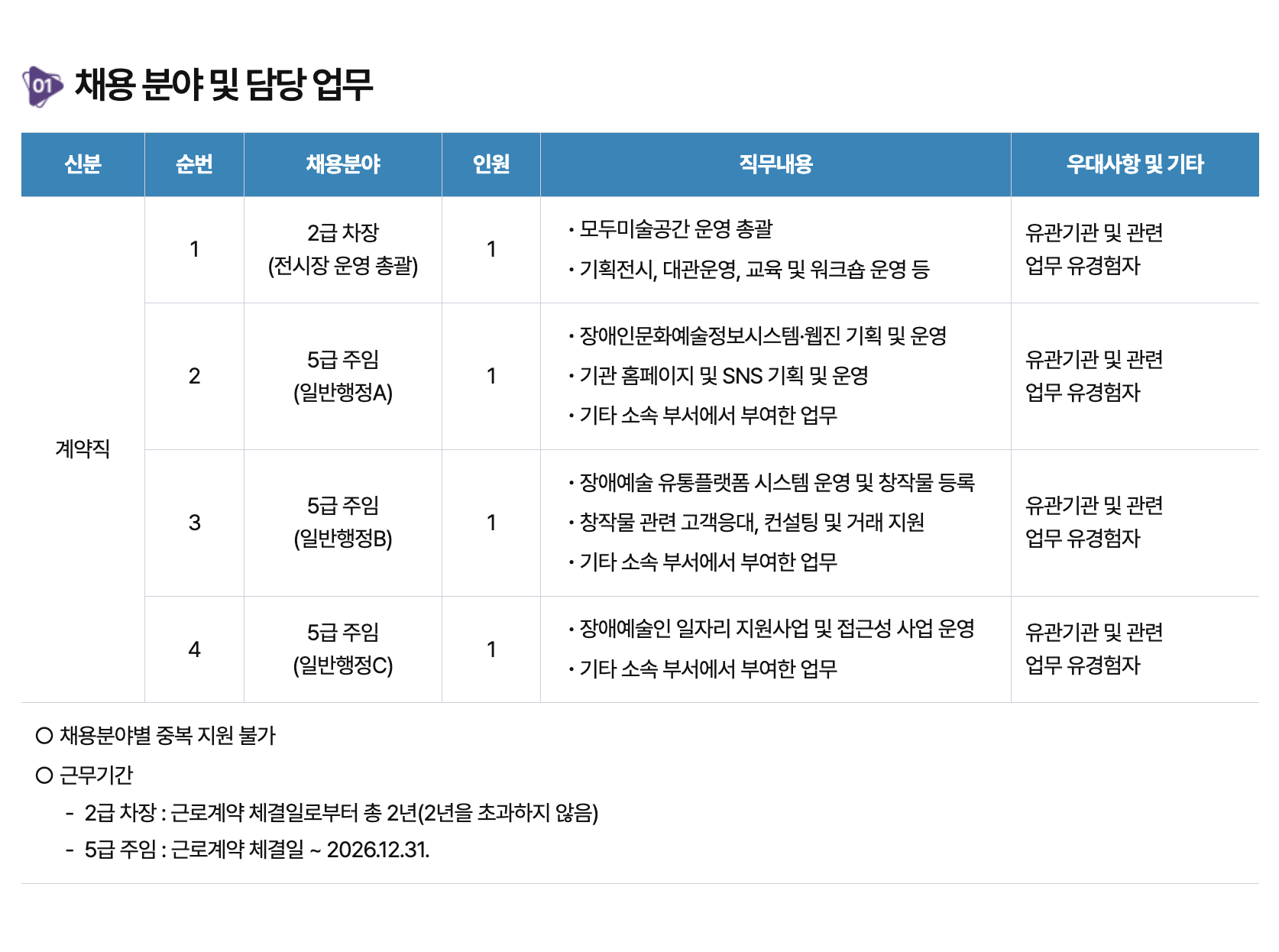 [한국장애인문화예술원] 한국장애인문화예술원 2026년 1차 채용(전시장 총괄, 사업운영)