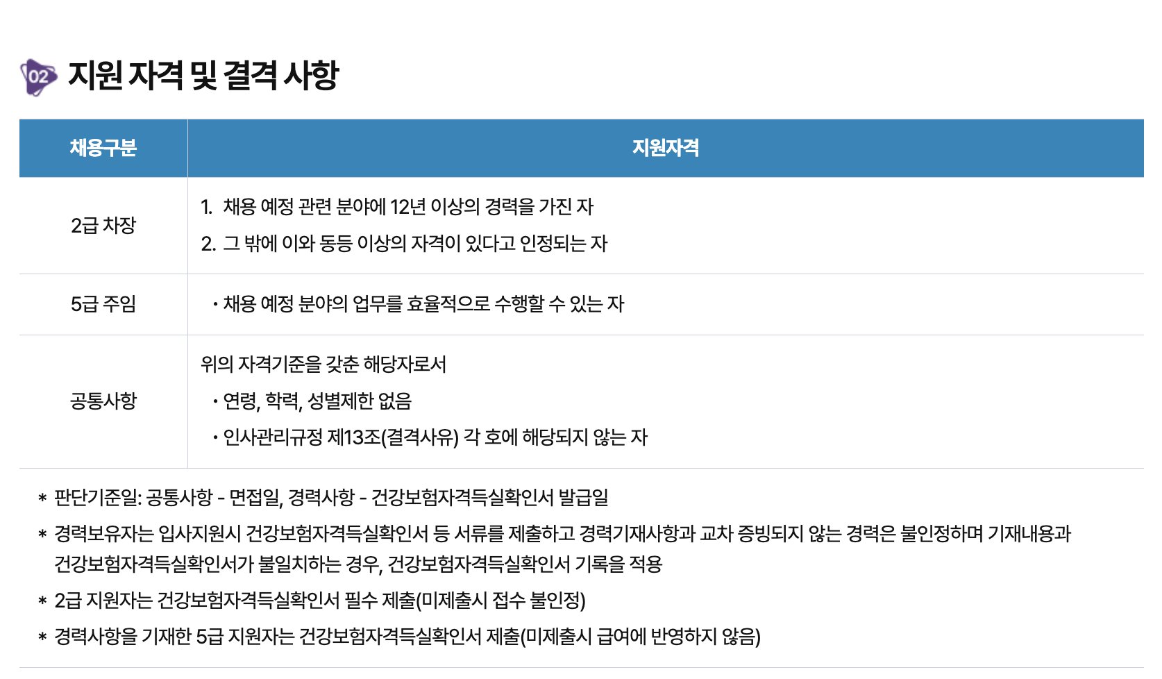 하기 내용은 참고만 하시고 반드시 접수사이트의 상세공고(자격요건, 업무, 보수, 계약기간, 근무장소 등) 확인바랍니다.