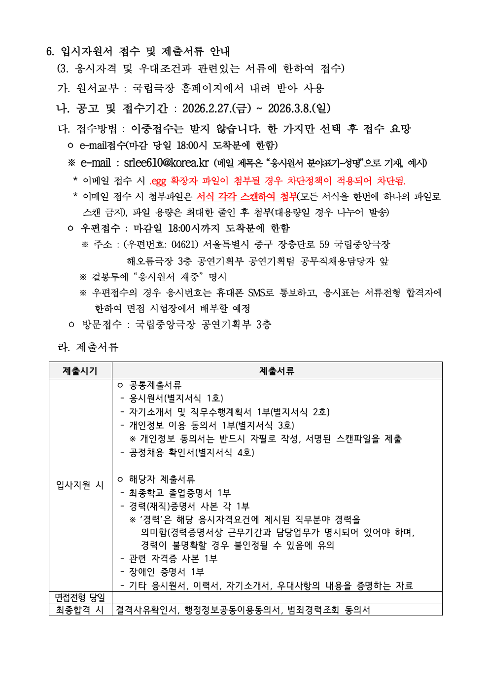 [국립극장] 국립극장 공연기획부 공무직 근로자 채용 공고