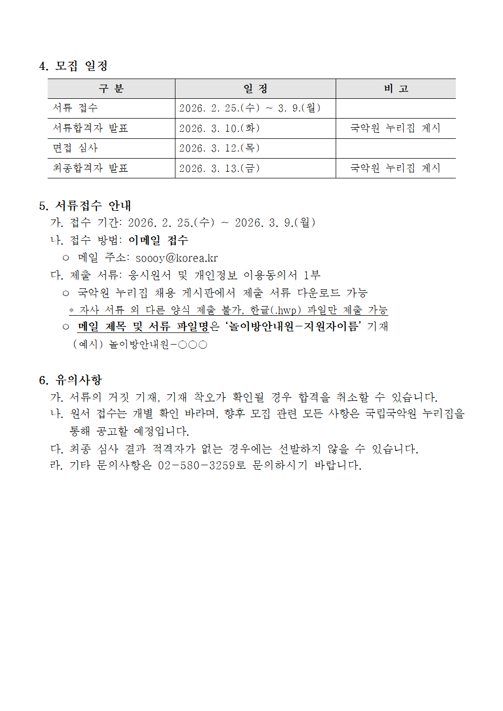 20260305090924_2026년 국립국악원 놀이방 안내원 모집 공고.hwp