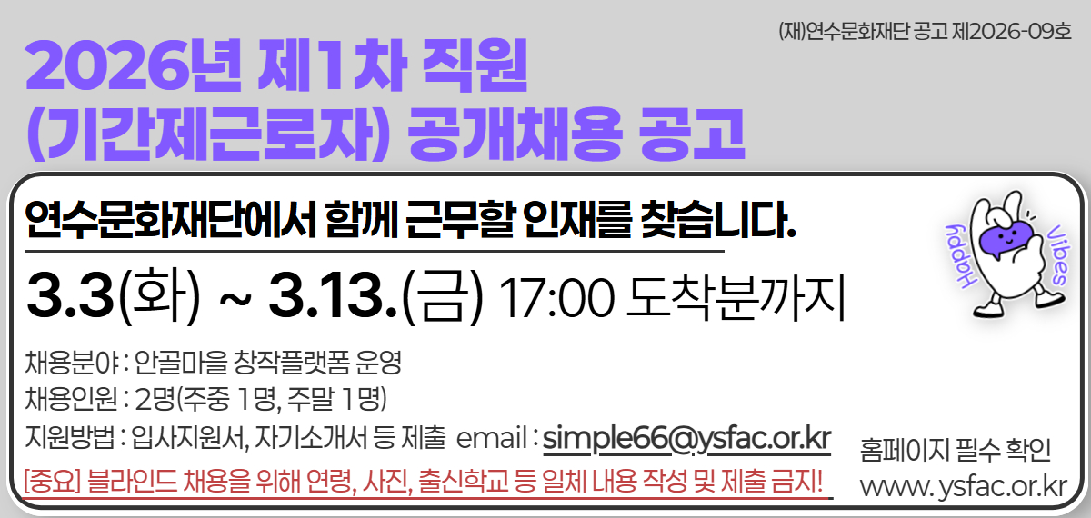 [(재)연수문화재단] (재)연수문화재단 2026년 제1차 직원(기간제근로자) 공개채용 공고