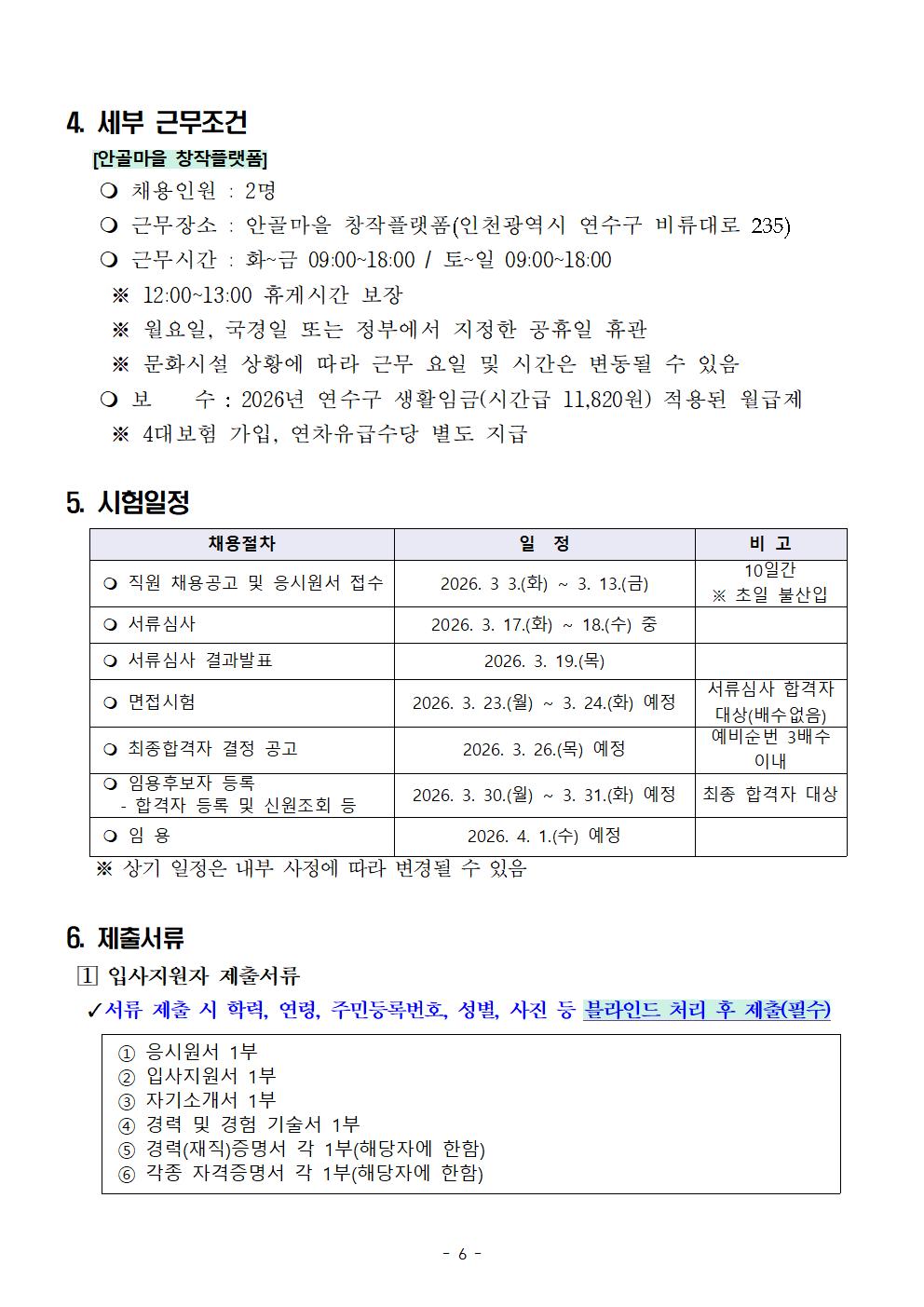 [회원등록공고] 2026년 제1차 (재)인천중구문화재단 직원채용 재공고